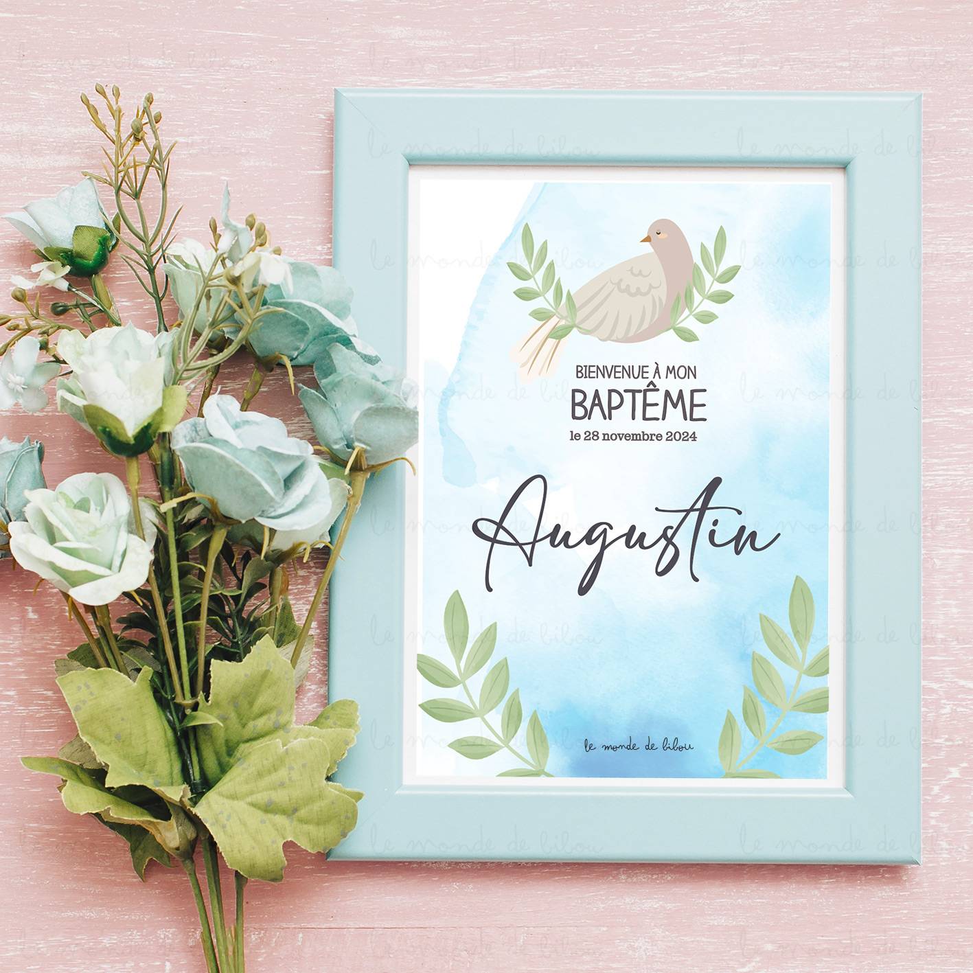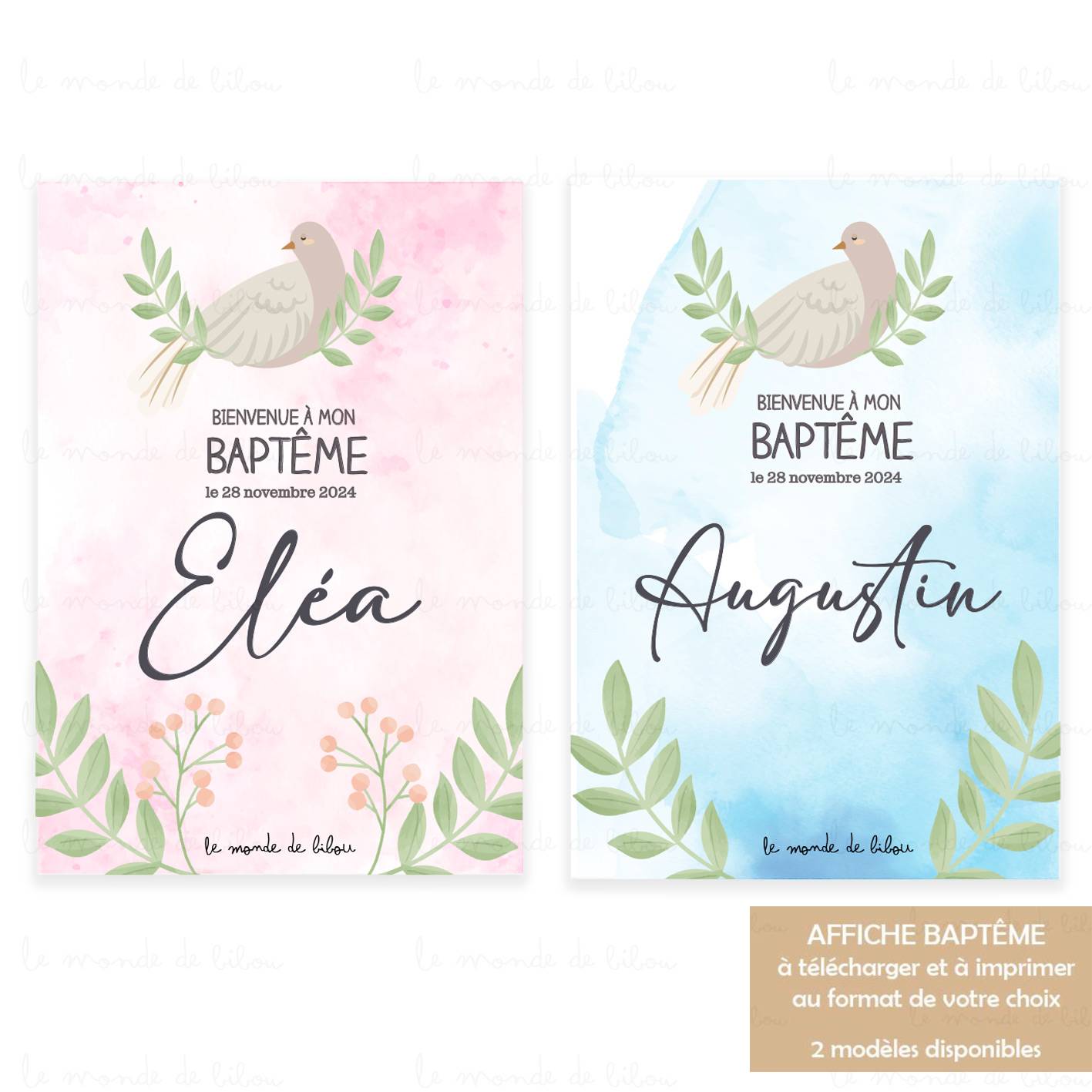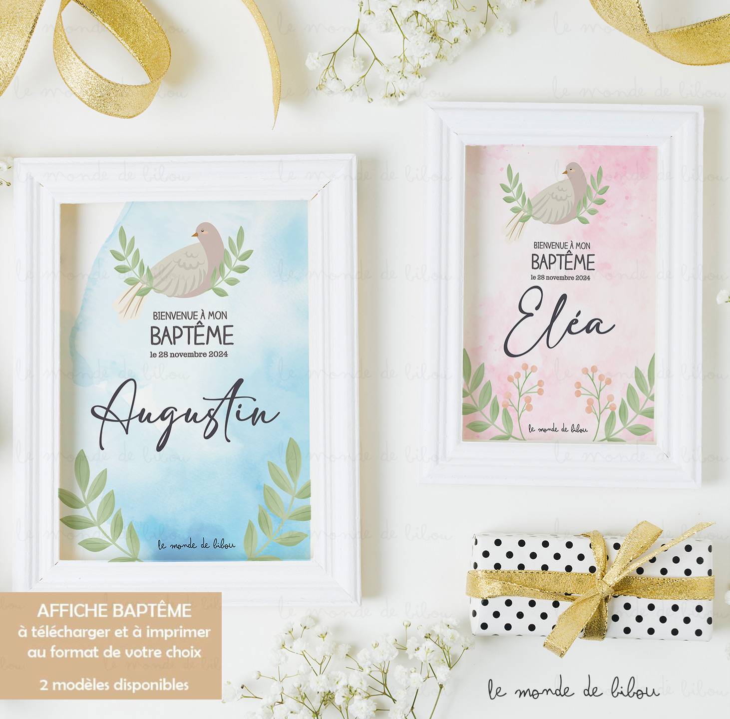 Marquez l’occasion spéciale du Baptême ou de la Communion avec notre magnifique Affiche Bienvenue au Baptême à télécharger. Cette affiche numérique personnalisable est conçue pour accueillir chaleureusement les invités et créer une atmosphère spéciale lors de cet événement important.. Notre affiche à imprimer est disponible en 2 versions et adaptable au format que vous souhaitez.