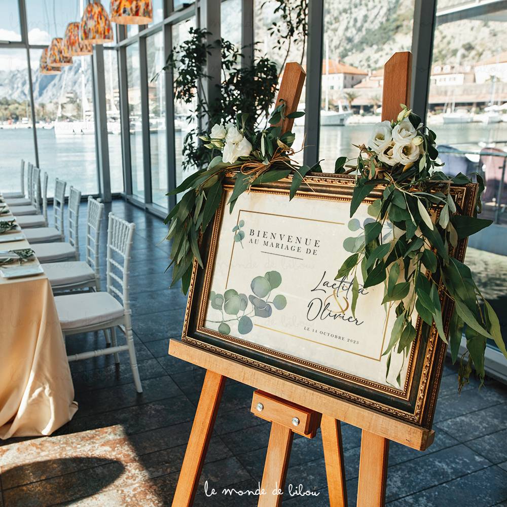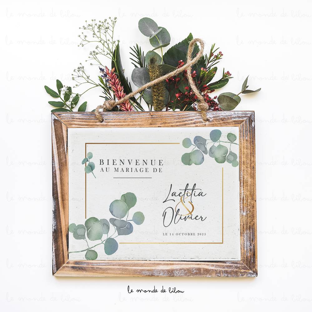 Avec notre affiche Bienvenue téléchargeable à imprimer par vos soins. Elle est personnalisée aux prénoms des mariés ainsi qu’à la date du mariage.