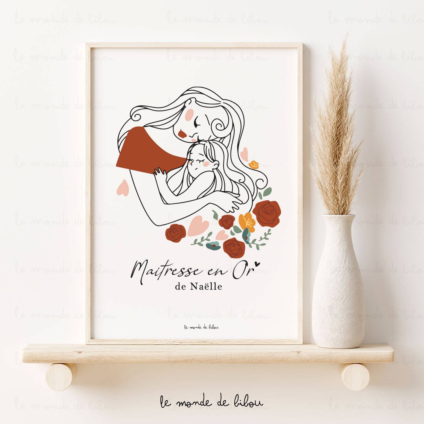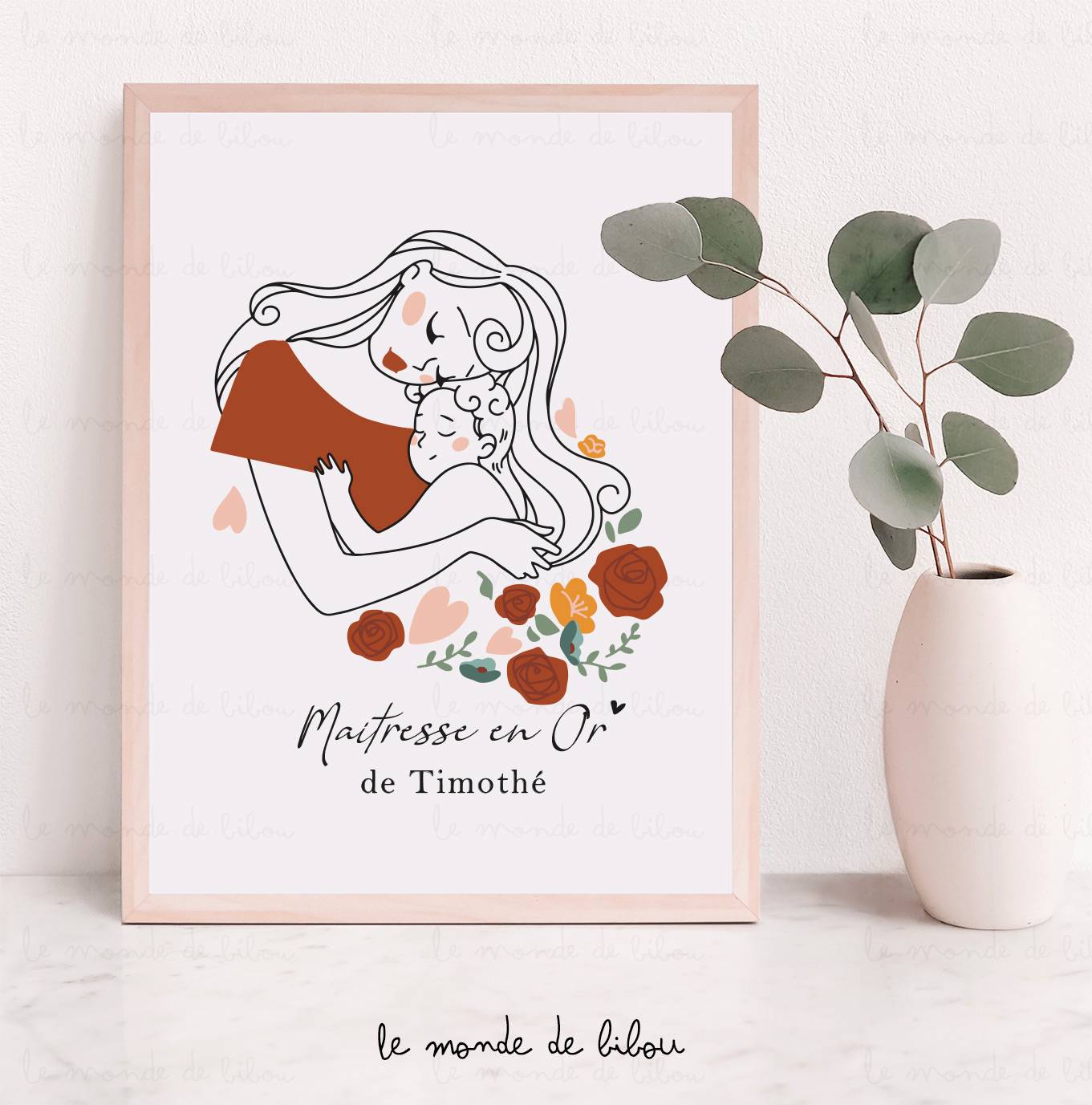 Notre Affiche Maîtresse en or vous plaît ? Retrouvez tous nos cadeaux personnalisés pour Maître, Maîtresse, Atsem, AVS et Nounou dans la boutique.