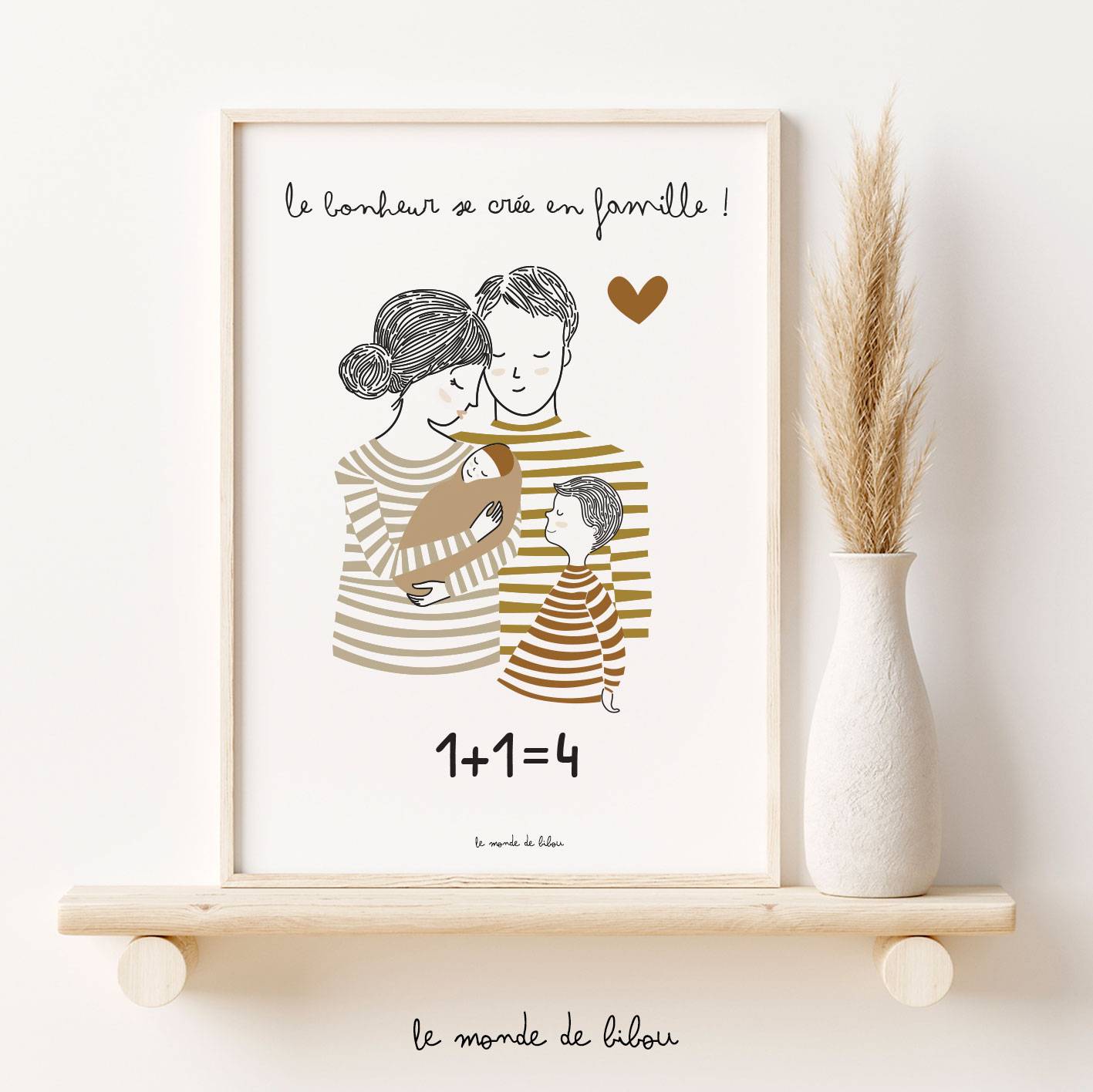 Notre Affiche personnalisée 1+1=Famille vous plaît ? Découvrez nos cadeaux pour toute la famille dans la boutique Le Monde de Bibou (Badges, Magnets, Mugs, Cartes, Puzzles, Sacs et Pochettes…). Cette illustration est une création le Monde de Bibou®. Toute reproduction est donc formellement interdite.