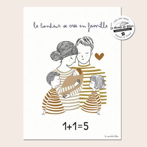 - Texte : “Le bonheur se crée en famille ! 1+1=3/4/5 ”