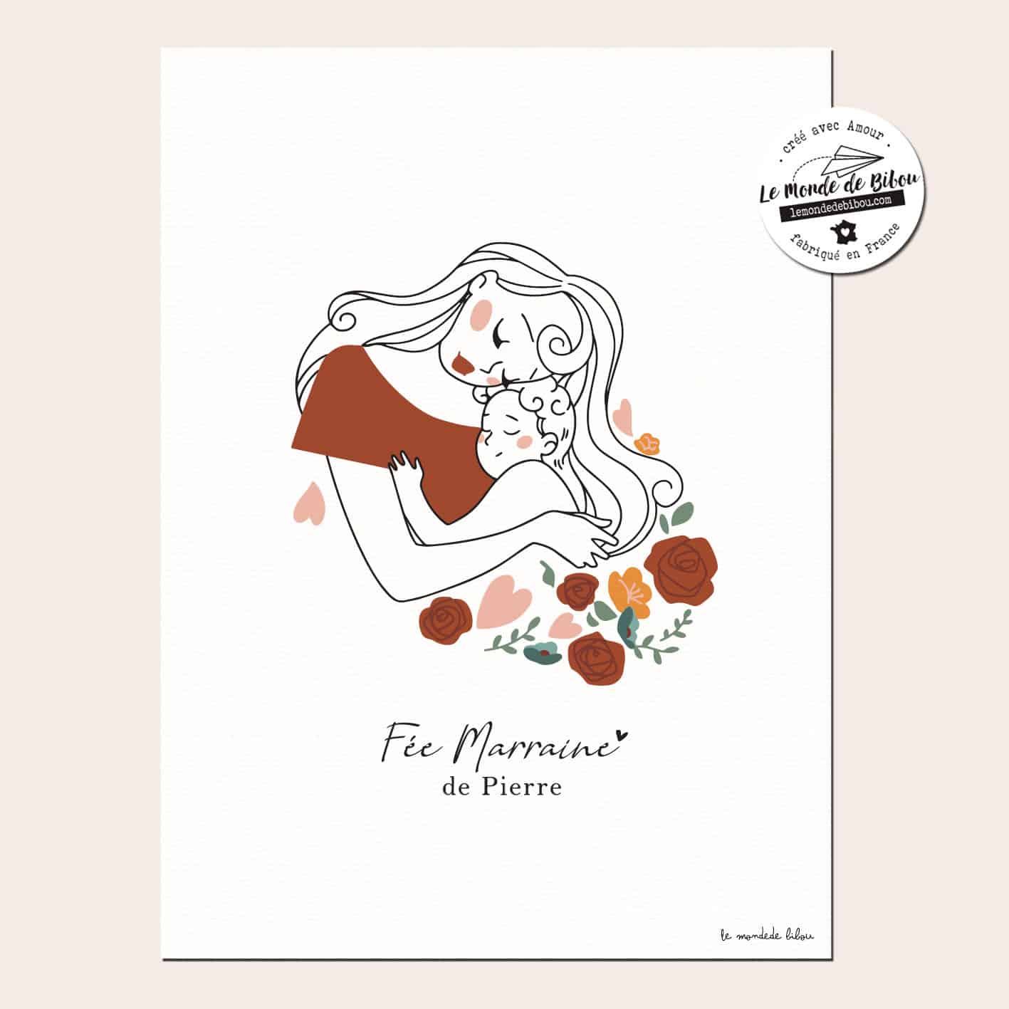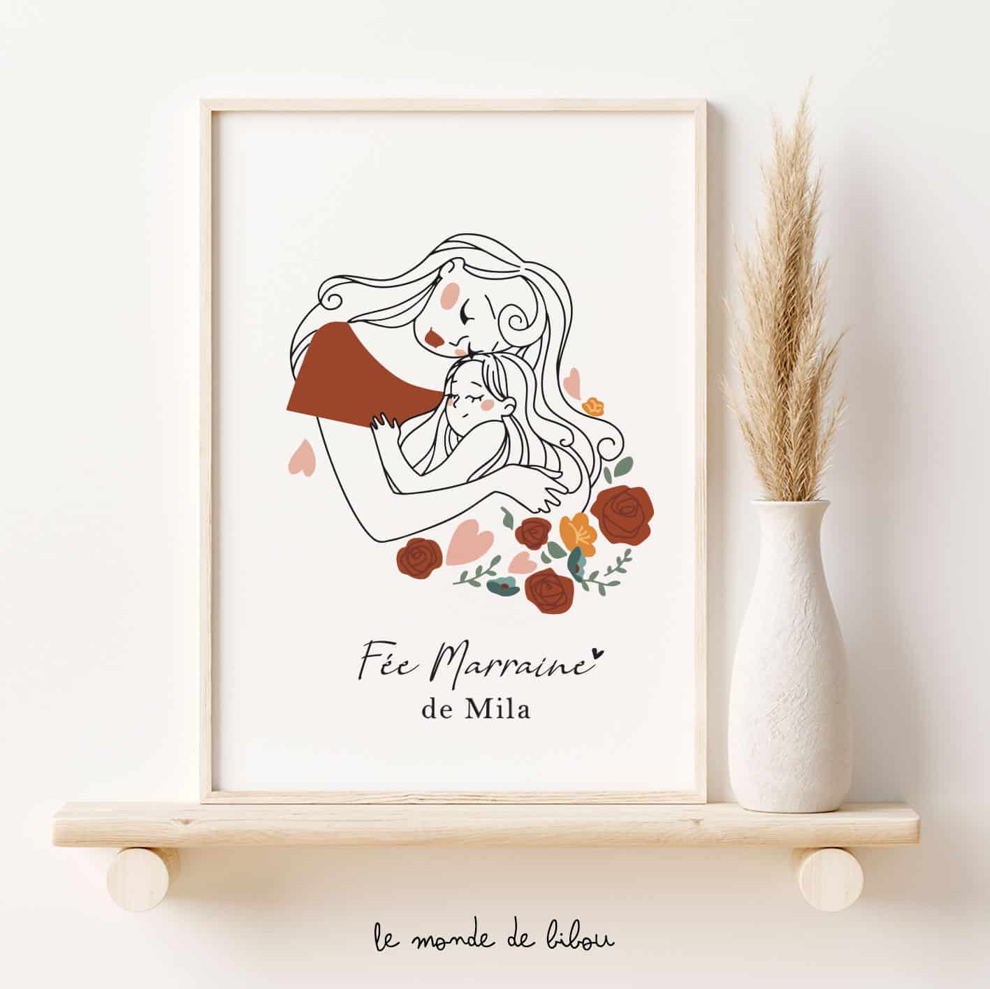 Cette jolie affiche personnalisée pour la marraine de votre enfant est personnalisée au prénom du filleul ou de la filleule.
