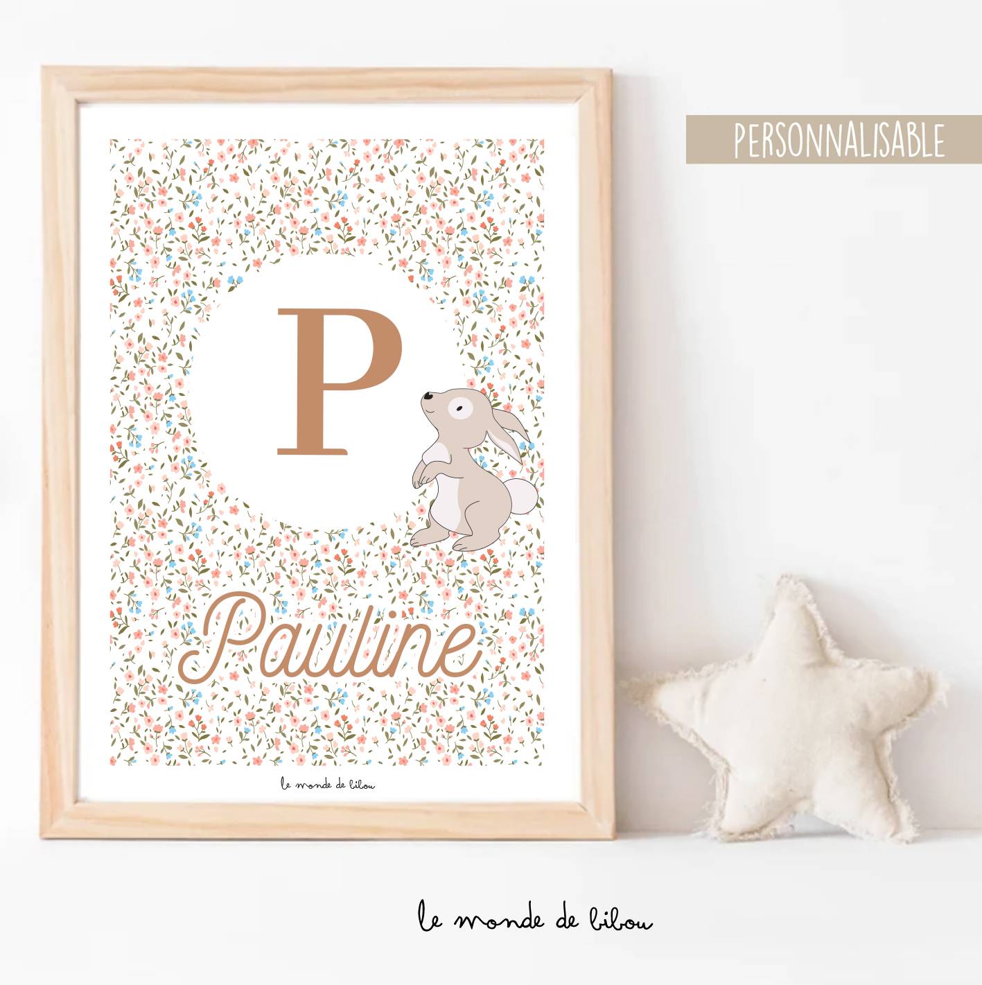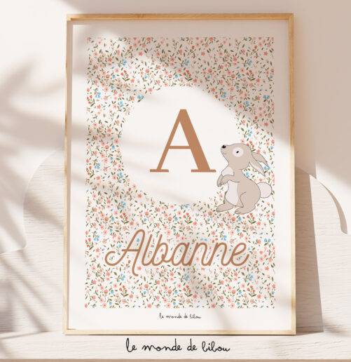 On adore cette jolie Affiche Prénom Lapin Liberty personnalisée qui se mariera à merveille dans une chambre de petite fille. Votre affiche personnalisée est imprimée sur un papier d’art mat et épais pour mettre en avant l’illustration et donner un rendu final haut de gamme. Un beau cadeau à offrir à l’occasion d’une naissance, d’un anniversaire ou des fêtes de Noël par exemple…