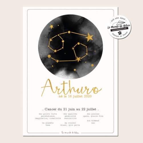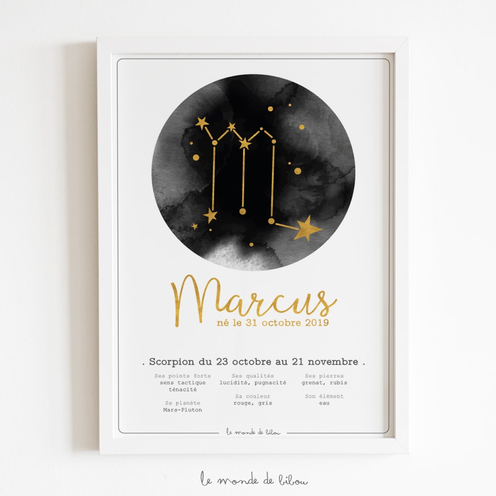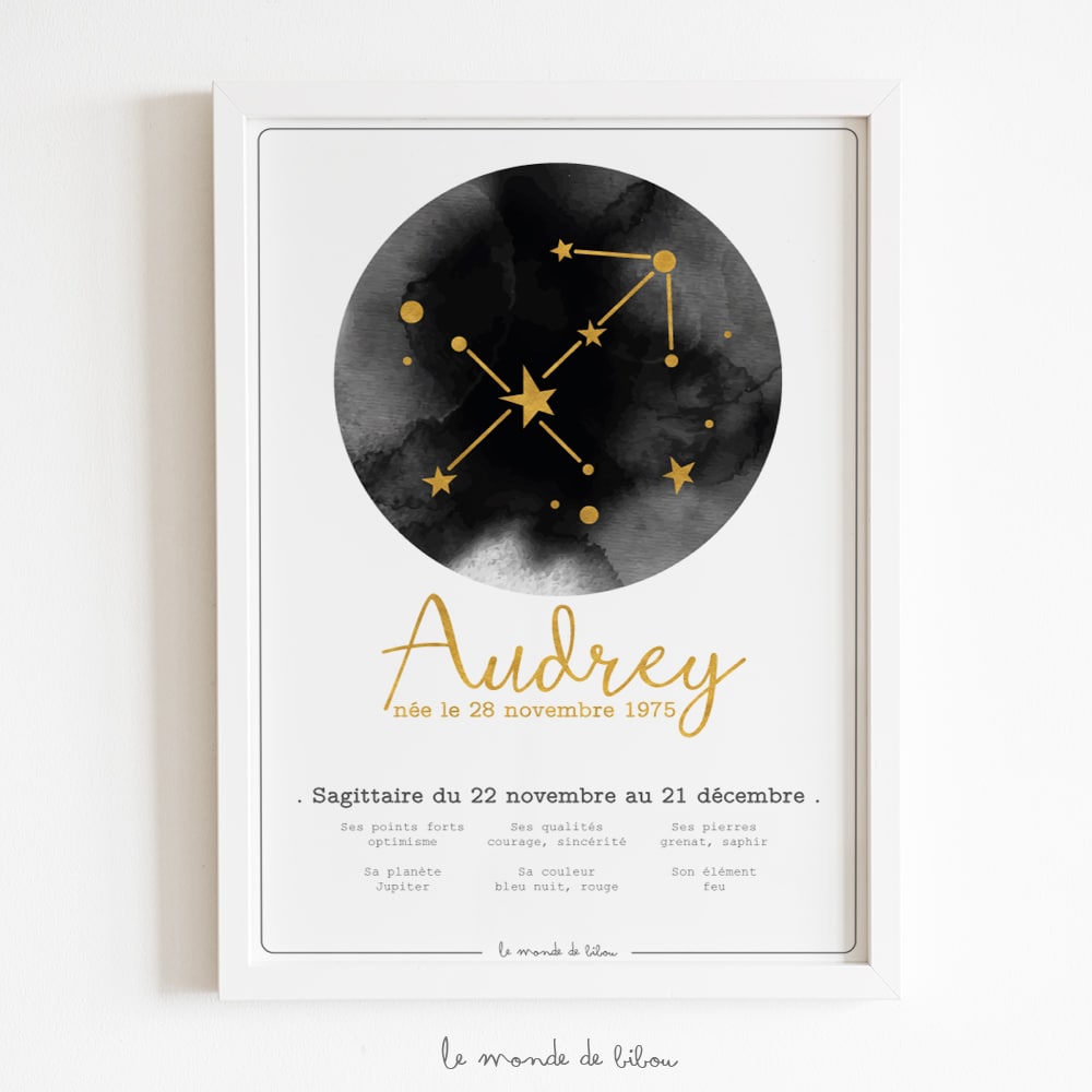 - Affiche personnalisée au signe astrologique, à la date de naissance et au prénom de votre choix