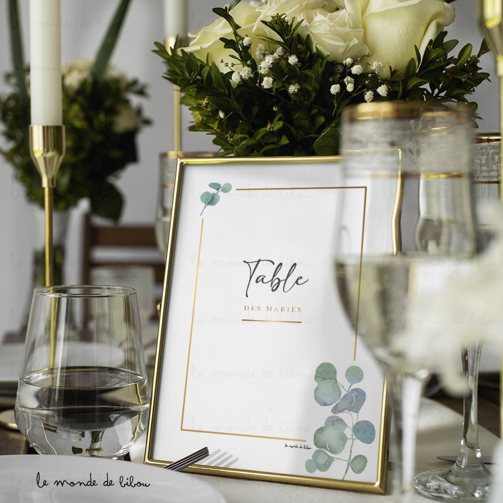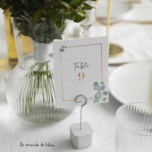 - 10 affichettes N° de tables (1 table des mariés + Tables de 1 à 9)