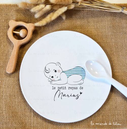 Vous cherchez le cadeau parfait pour célébrer la venue d’un petit trésor dans votre vie ou dans celle d’un être cher ? Découvrez notre adorable Assiette incassable Bébé personnalisée ! 🍼✨ N’hésitez pas à l’accompagner de son gobelet incassable sur le même thème, c’est le cadeau de naissance idéal !
