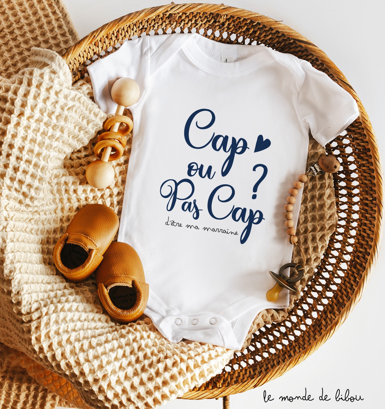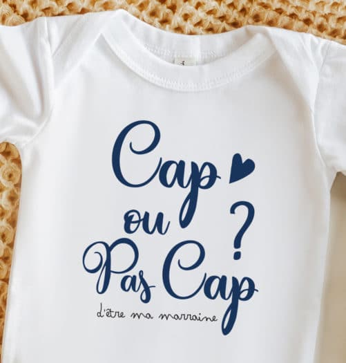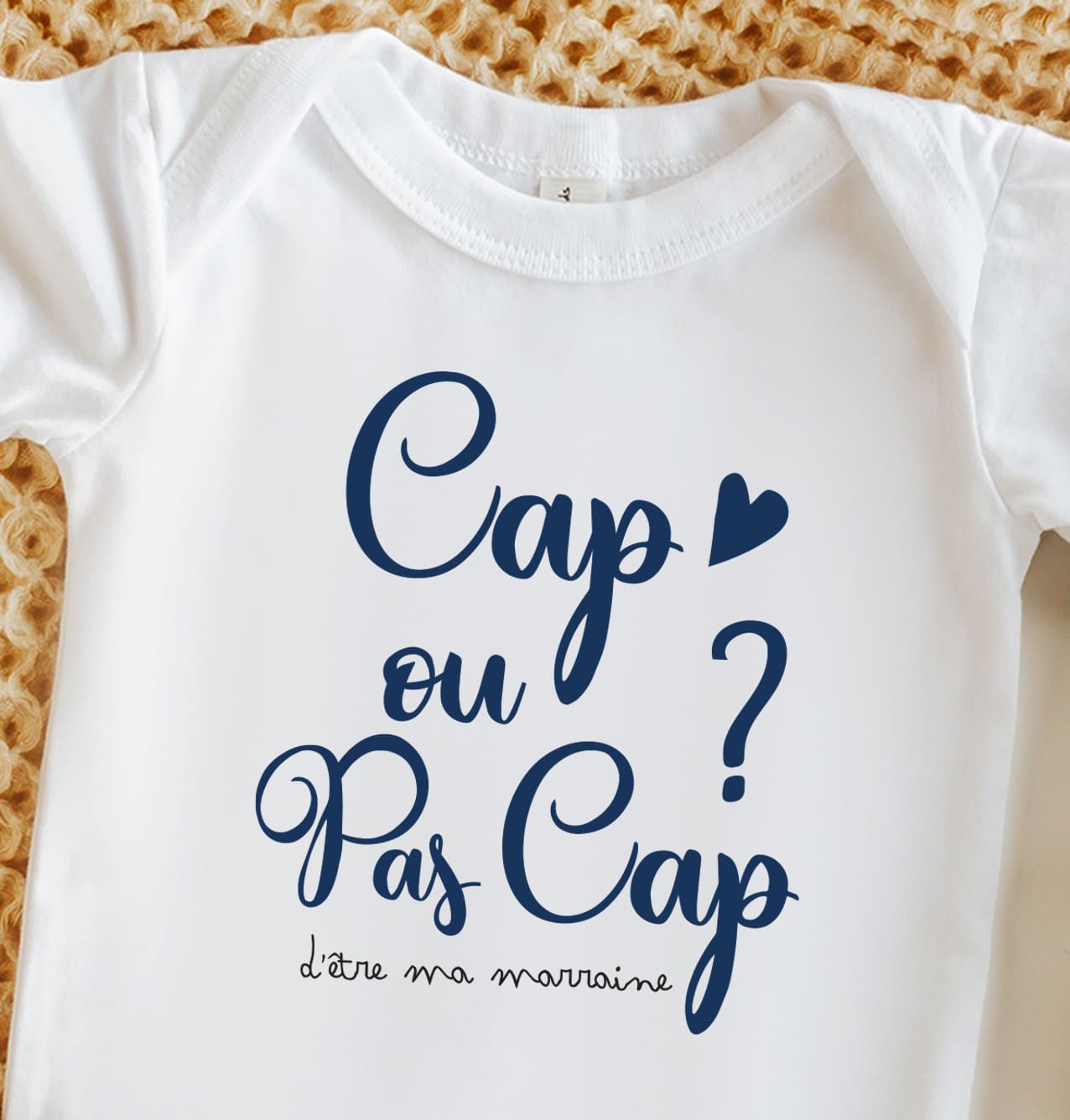 Notre Body Cap ou pas cap Marraine vous plaît ? Découvrez tous nos Bodies et T-shirts pour bébés et enfants sur la boutique. Retrouvez également la version Demande parrain. Nous vous proposons également de nombreux cadeaux demande parrain et marraine tous plus originaux les uns que les autres. A découvrir : de nombreux cadeaux de la collection Cap ou pas cap Parrain/Marraine !