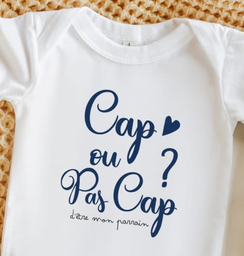 Notre Body Cap ou pas cap Parrain vous plaît ? Découvrez tous nos Bodies et T-shirts pour bébés et enfants sur la boutique. Nous vous proposons également de nombreux cadeaux demande parrain et marraine tous plus originaux les uns que les autres. A découvrir : de nombreux cadeaux de la collection Cap ou pas cap Parrain/Marraine !