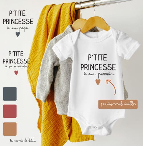 Notre Body p’tite princesse personnalisable vous plaît, alors retrouvez sur la boutique toutes nos Bodies et T-shirts pour bébés et enfants. Découvrez également tous nos cadeaux personnalisés illustrés sur le même thème dans la boutique.