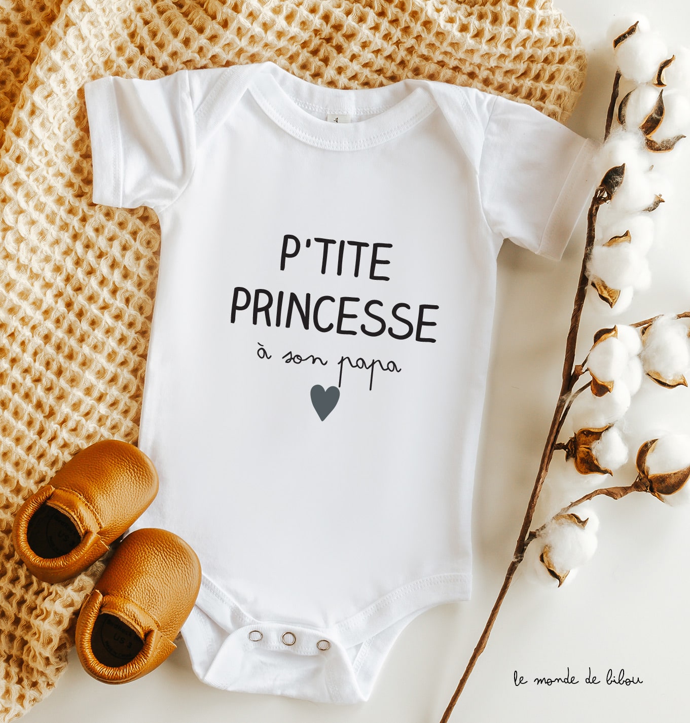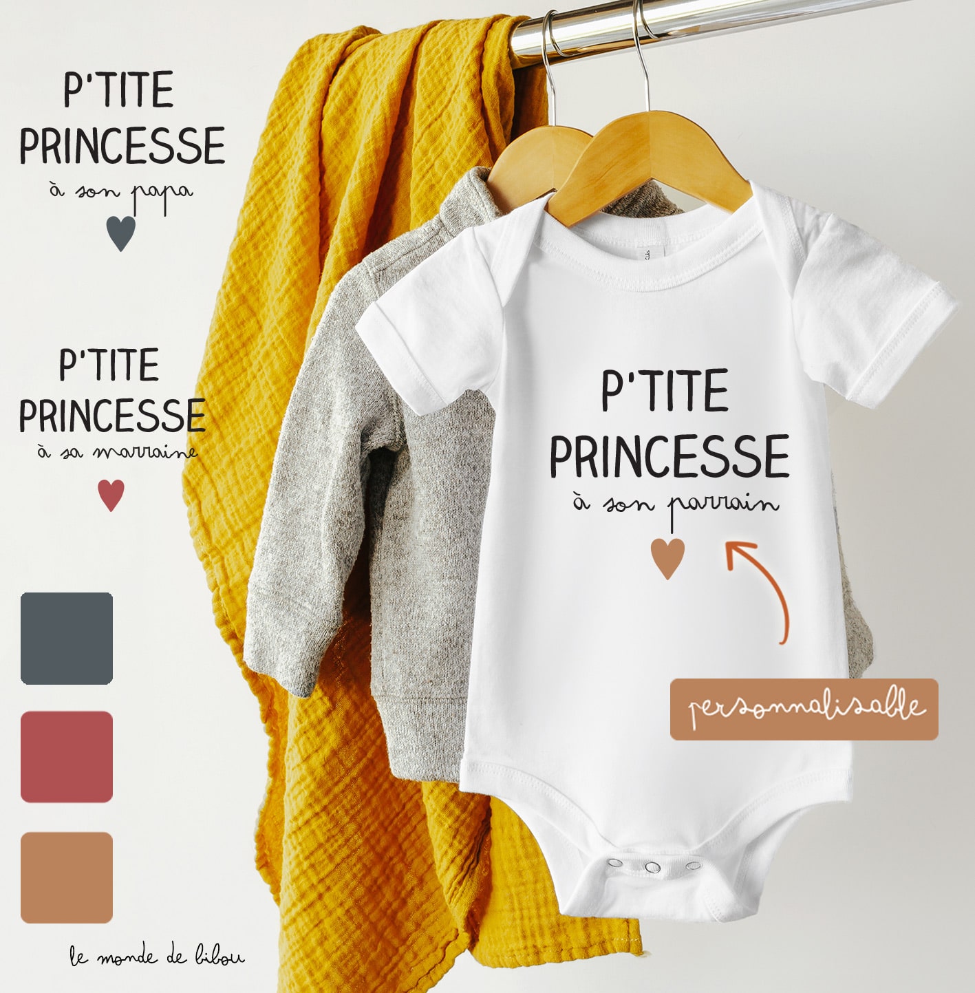 On adore ce petit Body p’tite princesse personnalisable. Le body à manches courtes ou longues pour enfants convient à tous les bébés, la fermeture à l’entrejambe se fait par pression pour faciliter le changement. En plus nous vous proposons 3 coloris au choix (gris souris, Groseille ou Caramel) !