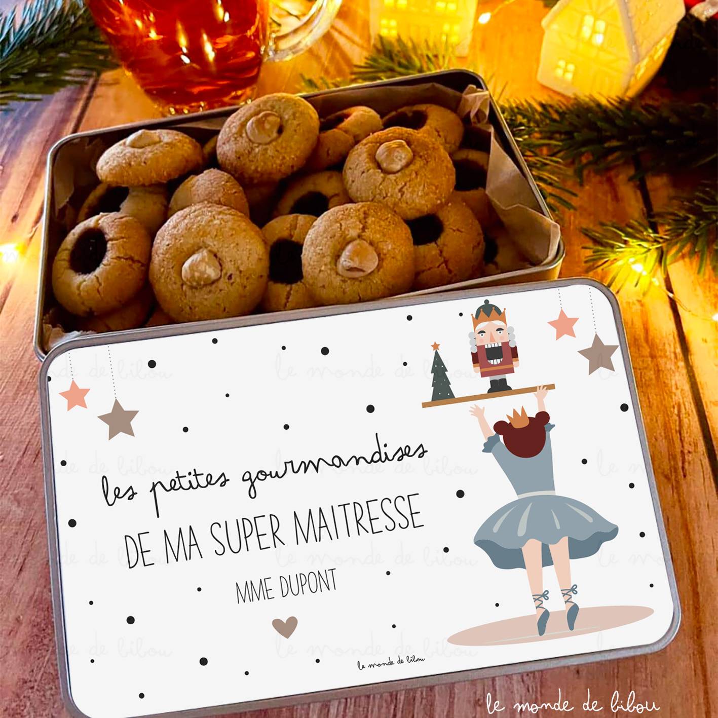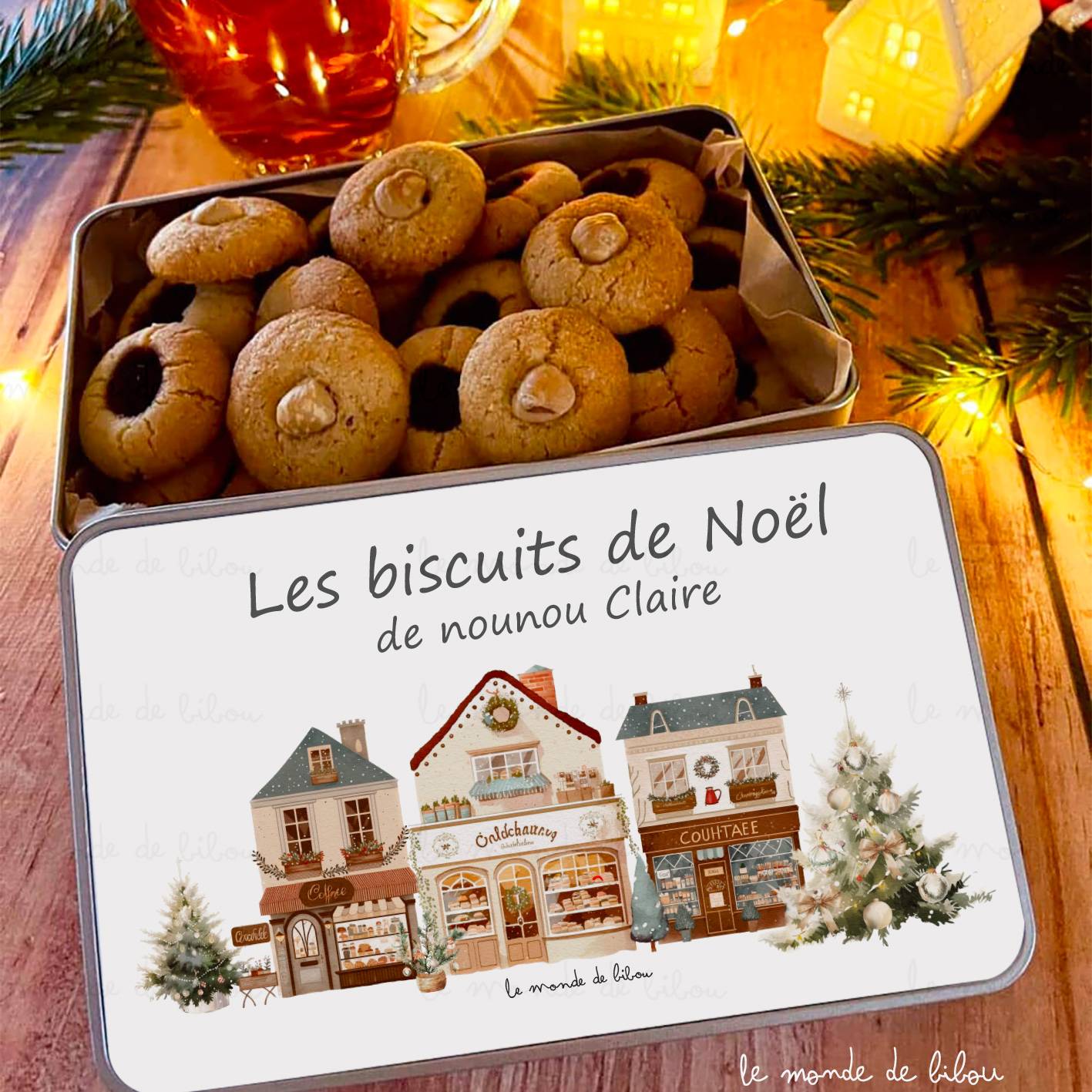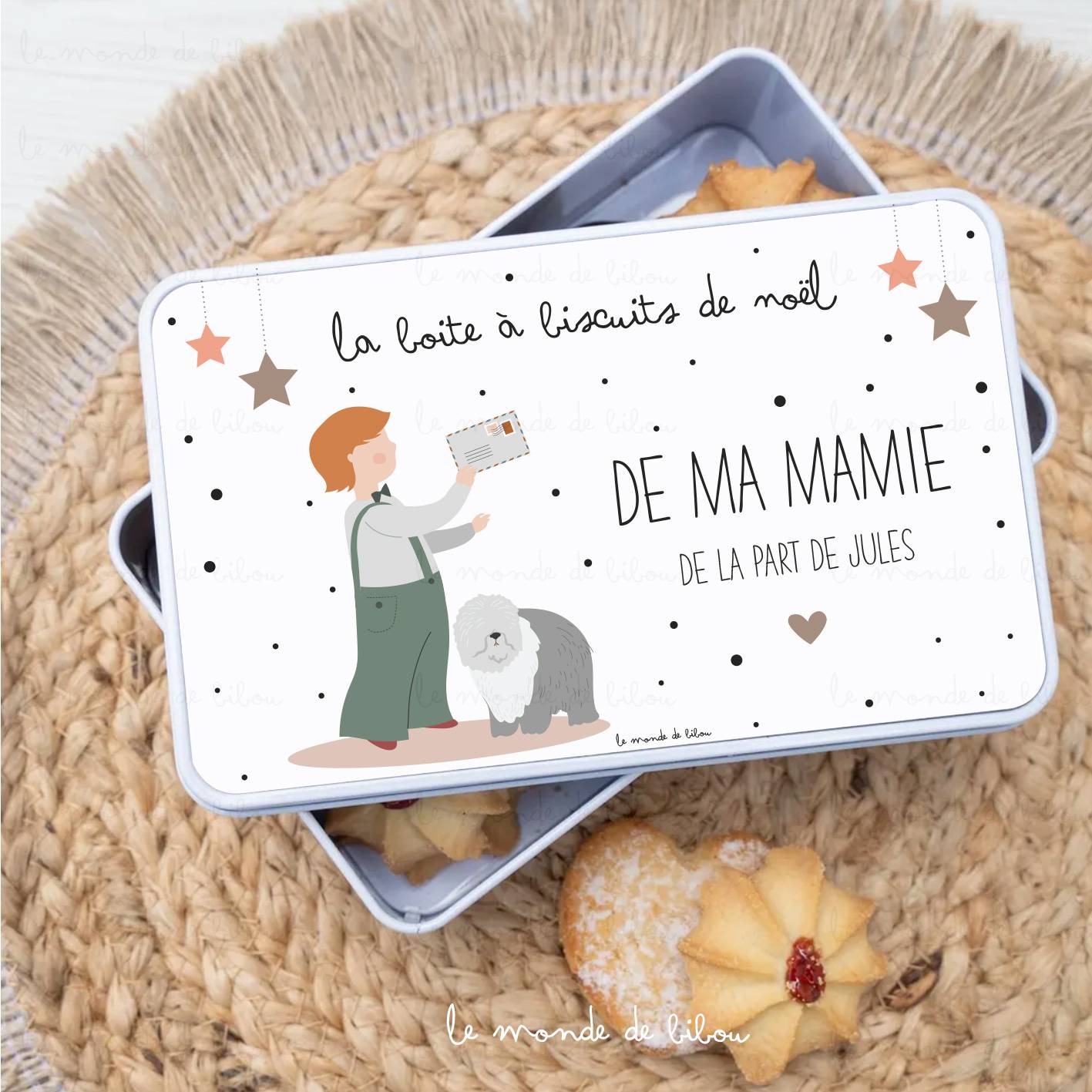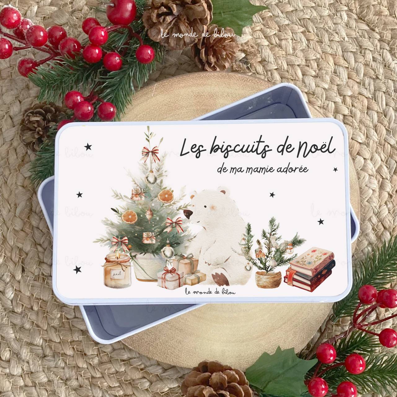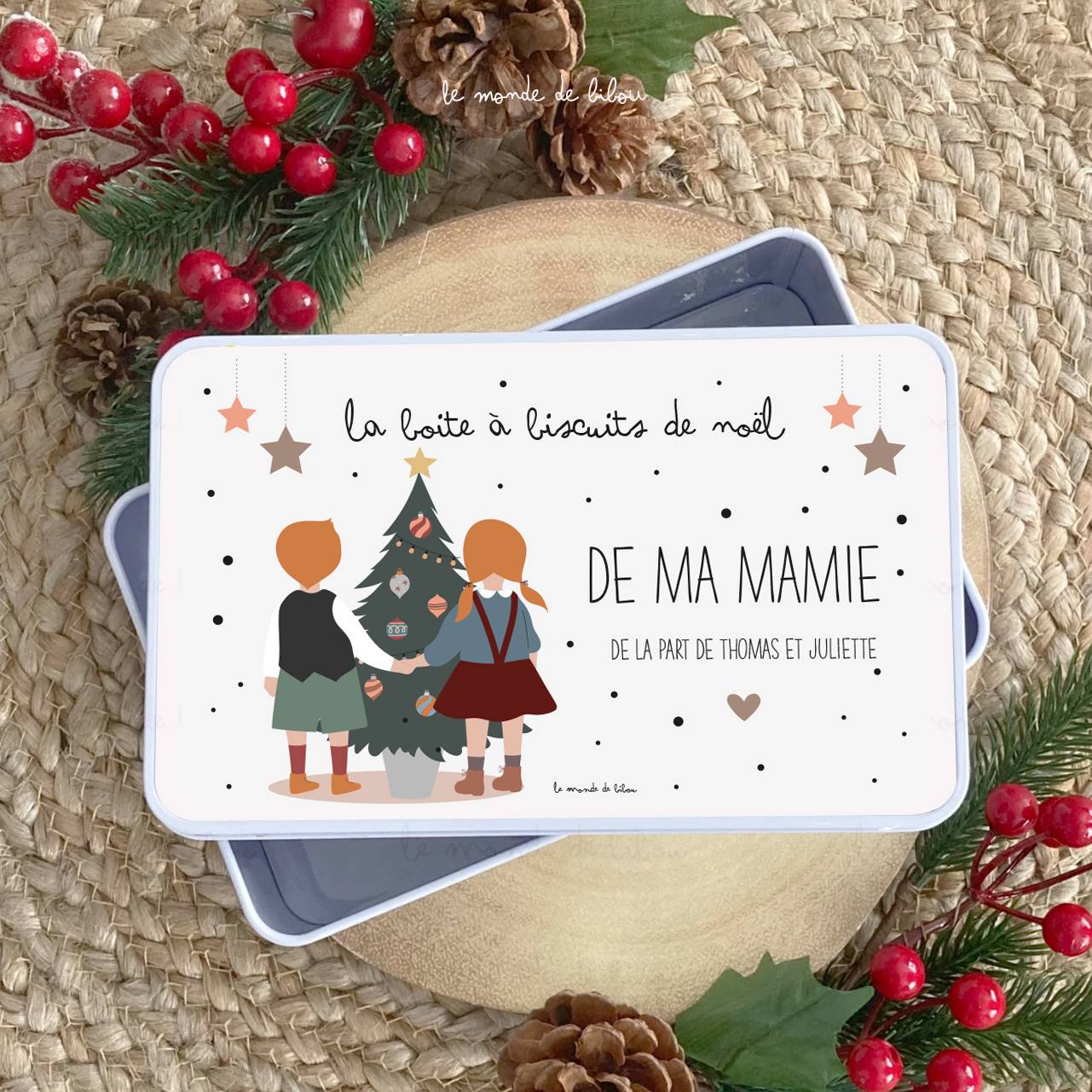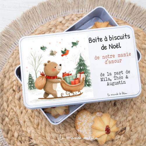 Notre boîte à biscuits personnalisée avec un design festif vous permettra de conserver vos douceurs tout en les protégeant des petites mains curieuses de vos enfants ou petits-enfants. Pratique et esthétique, cette boîte est aussi un excellent choix pour les grands-mères passionnées de pâtisserie, qui aiment autant préparer que déguster leurs biscuits de Noël.