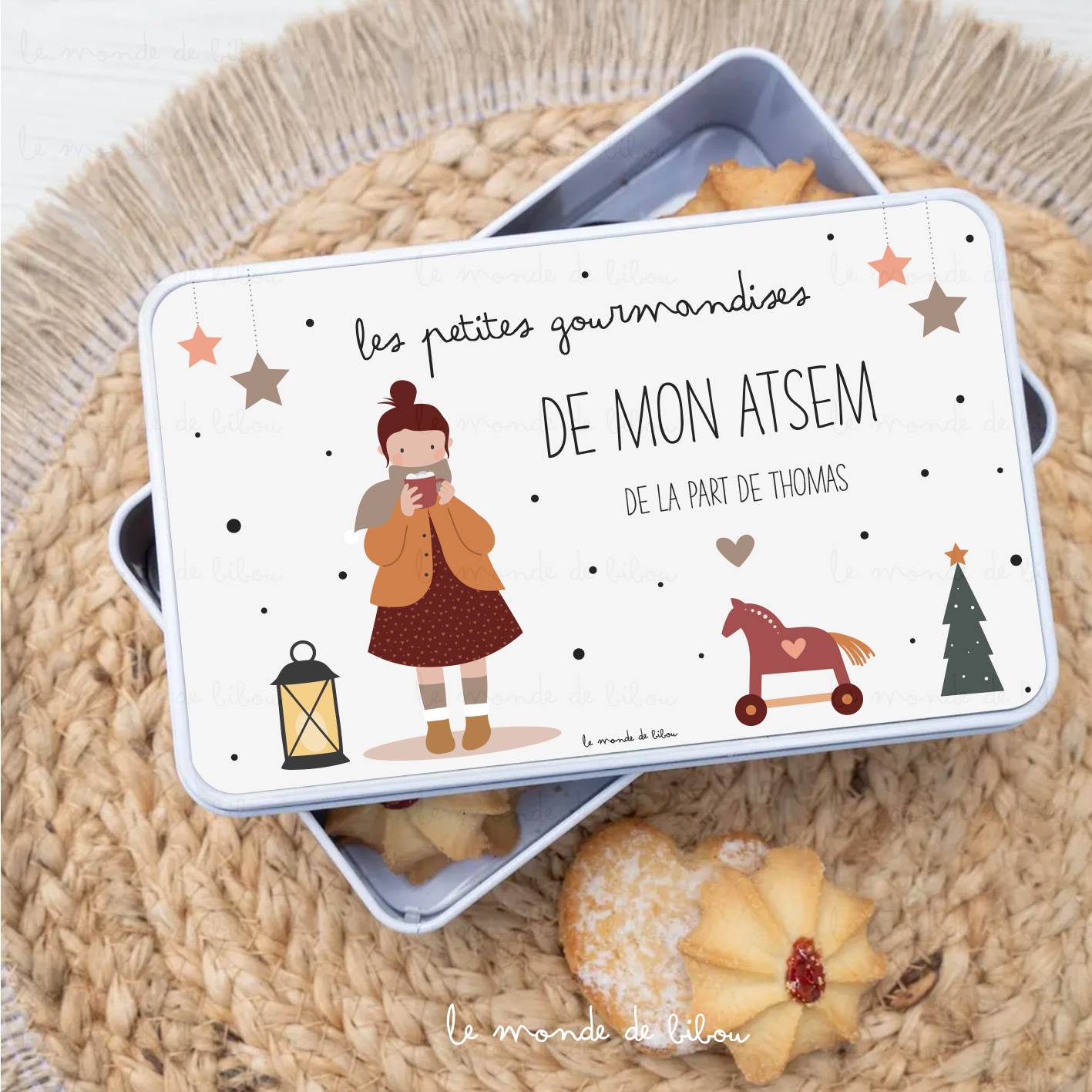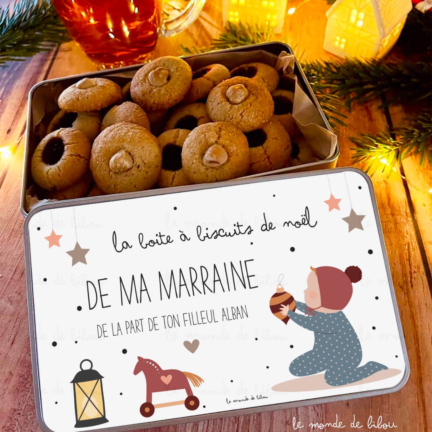 Offrez un cadeau unique et pratique avec notre Boîte à biscuits de Noël personnalisée, idéale pour apporter une touche gourmande à vos fêtes de fin d’année. Cette boîte est parfaite pour ranger vos biscuits de Noël faits maison ou d’autres friandises. C’est un cadeau de Noël personnalisé qui saura ravir grands et petits, tout en ajoutant une touche festive à la décoration de votre table.