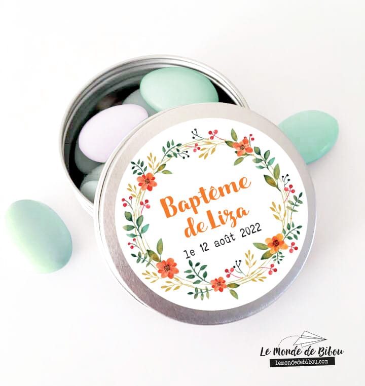 Cette ravissante petite Boîte à dragées Couronne d’automne est personnalisable avec le prénom de l’enfant et la date de l’évènement. Le cadeau idéal à offrir à vos invités lors de votre évènement, que ce soit un Baptême, une Communion ou un anniversaire.