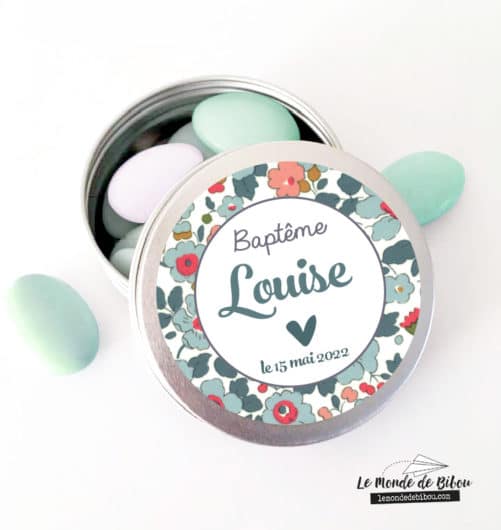 Cette ravissante petite boîte dragées Liberty papillon est personnalisable avec le prénom de l’enfant et la date de l’évènement. Le cadeau idéal à offrir à vos invités lors de votre évènement, que ce soit un Baptême, une Communion ou un anniversaire.