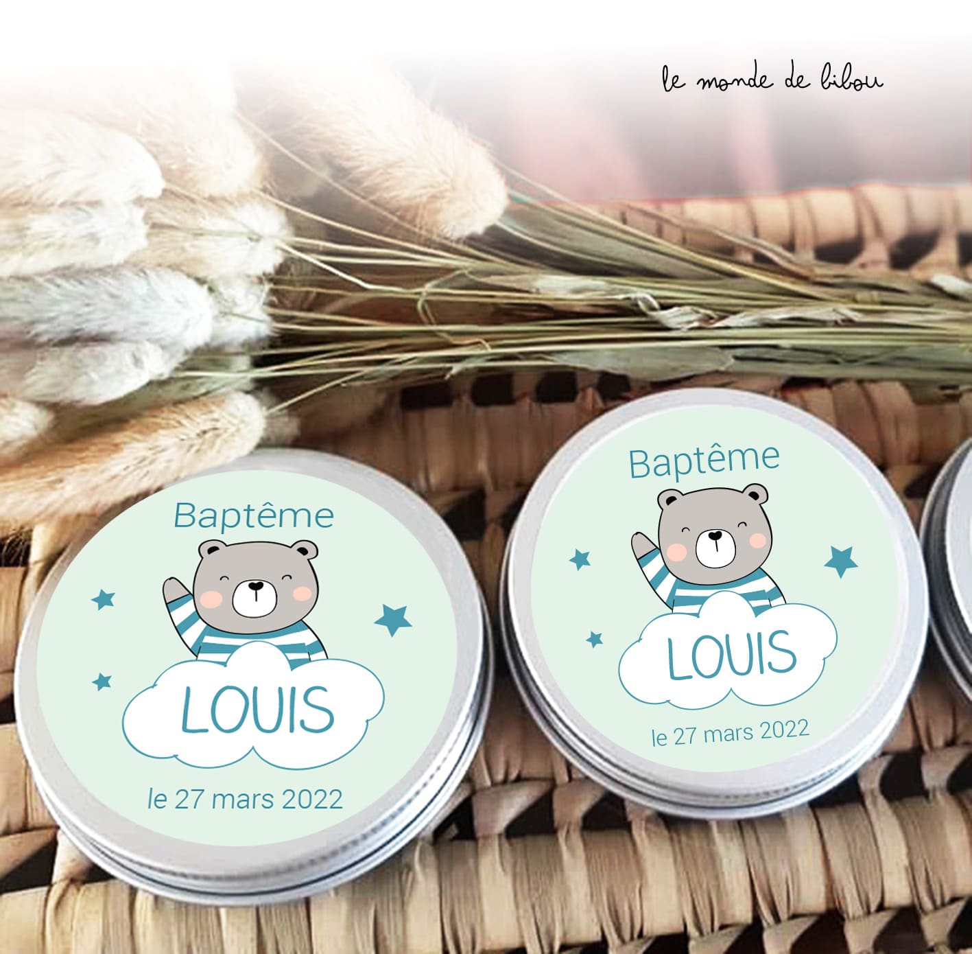 Cette ravissante petite Boîte à dragées ourson est personnalisable avec le prénom de l’enfant et la date de l’évènement. Le cadeau idéal à offrir à vos invités lors de votre évènement, que ce soit un Baptême, une Communion ou un anniversaire.