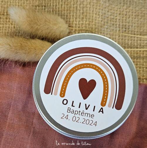 Notre Boîte à dragées personnalisée arc en ciel vous plaît, mais vous souhaitez encore plus de personnalisation avec votre propre thème? N’hésitez pas à nous demander, nous vous proposons un service sur-mesure. Retrouvez tous nos modèles de Boîtes à dragées sur la boutique ainsi que nos Sacs Ballotin à dragées. Retrouvez également notre lot de bougies sur le même thème.
