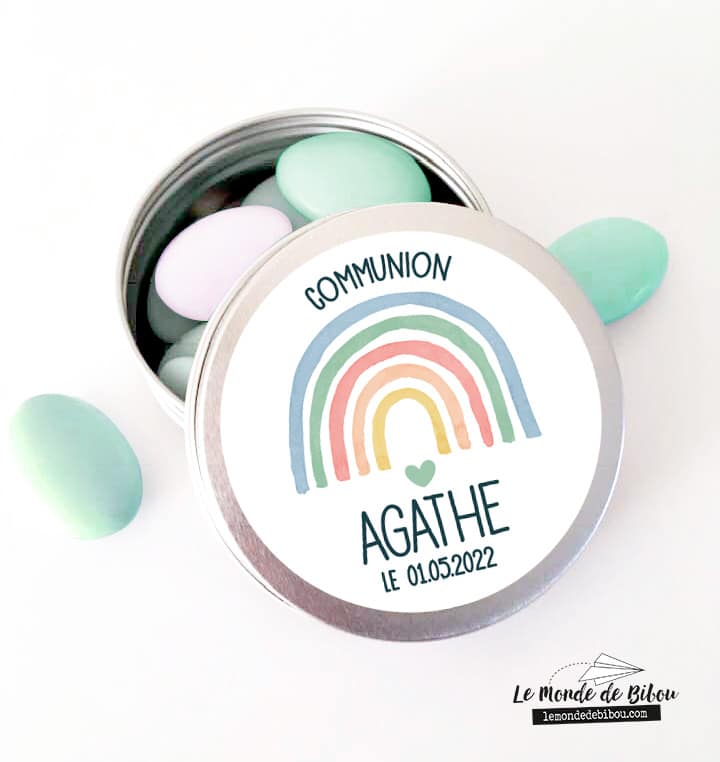 Cette ravissante petite Boîte à dragées personnalisée Rainbow est personnalisable avec le prénom de l’enfant et la date de l’événement. C’est le cadeau idéal à offrir à vos invités lors de votre événement, que ce soit un Baptême, une Communion ou un anniversaire.