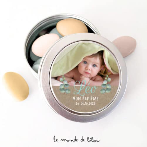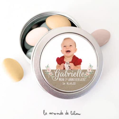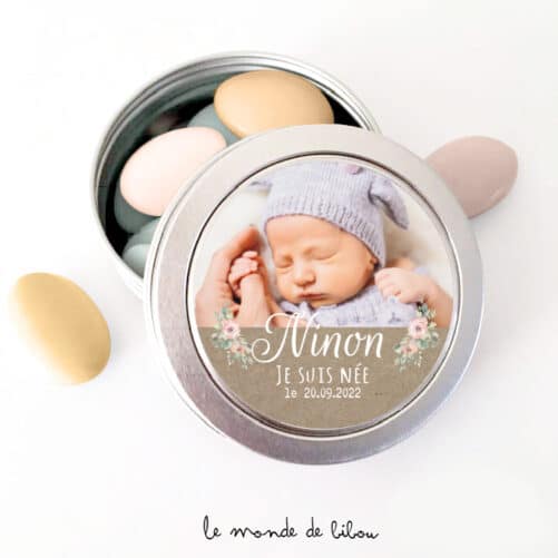 Cette ravissante petite Boîte à dragées photo personnalisée est personnalisable avec la photo, le prénom de l’enfant et la date de l’événement. C’est le cadeau idéal à offrir à vos invités lors de votre événement, que ce soit une naissance, un Baptême, une Communion ou un anniversaire. merci de nous fournir une PHOTO correcte svp ! Il doit y avoir de la hauteur mais aussi de la largeur ( photo paysage) pour que la photo rentre dans la forme demi cercle ! merci d’imaginer votre photo dans la forme !