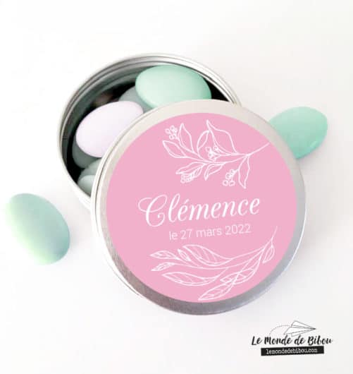 Notre Boîte à dragées prénom rose bonbon vous plaît, mais vous souhaitez encore plus de personnalisation avec votre propre thème? N’hésitez pas à nous demander, nous vous proposons un service sur-mesure. Retrouvez tous nos modèles de Boîtes à dragées sur la boutique ainsi que nos Sacs Ballotin à dragées.