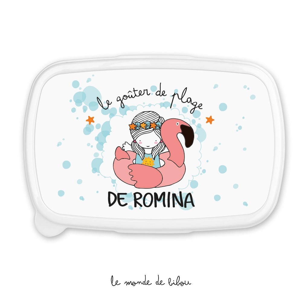 Notre boîte à repas personnalisée est idéale pour une petite fille, on adore son illustration qui rappelle l’été et donne envie de partir en vacances ! La boîte est personnalisée au prénom de votre enfant mais vous pouvez également choisir le petit texte (par exemple : le goûter de plage, le pique-nique de plage, le goûter de vacances, etc…), attention 3 ou 4 mots maximum.