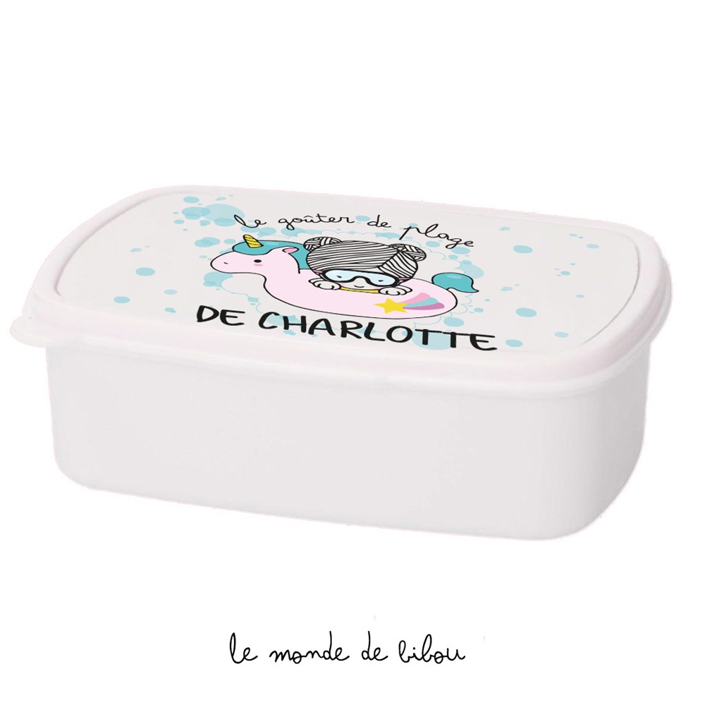 Notre boîte à repas personnalisée est idéale pour une petite fille, on adore son illustration qui rappelle l’été et donne envie de partir en vacances ! La boîte est personnalisée au prénom de votre enfant mais vous pouvez également choisir le petit texte (par exemple : le goûter de plage, le pique-nique de plage, le goûter de vacances, etc…), attention 3 ou 4 mots maximum.