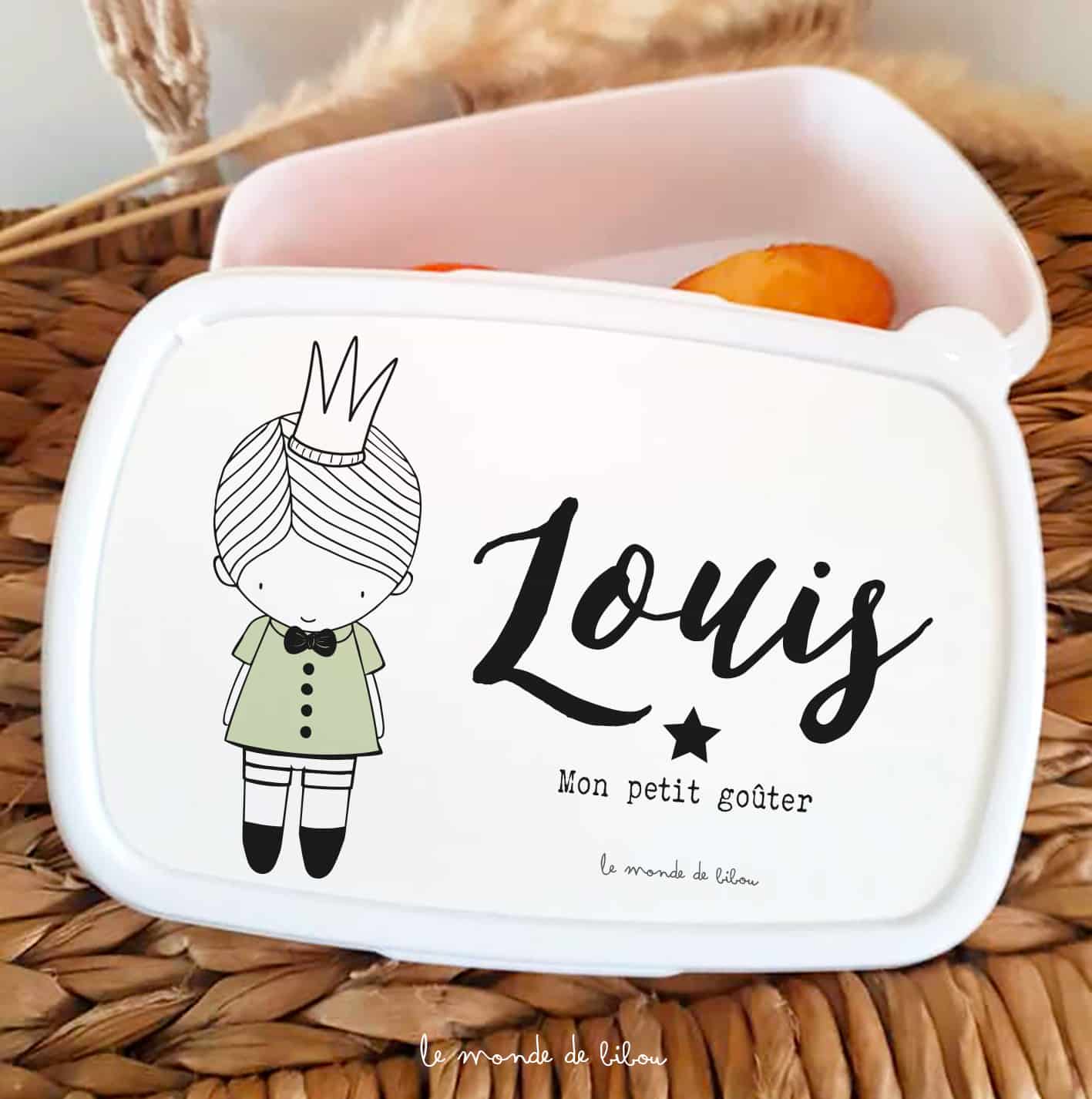 Voici un indispensable pour votre enfant, la Boîte à Goûter personnalisée Prince qui l’accompagnera partout. Une jolie idée de cadeau à offrir à votre ou vos enfants, mais aussi une belle idée pour que les grands-parents puissent gâter leurs petits-enfants ou même que les parrains et les marraines chouchoutent leurs filleuls…