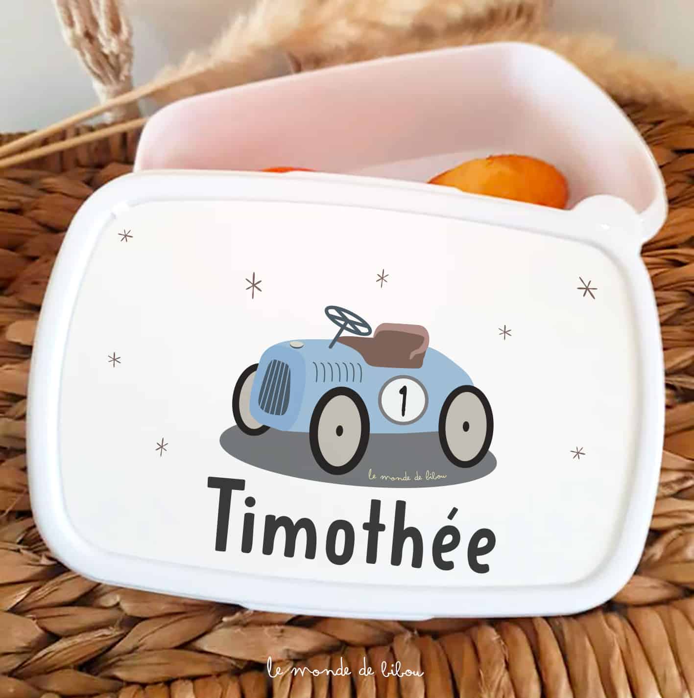 Notre Boîte à Goûter personnalisée Voiture retro vous plaît ? Retrouvez nos cadeaux enfants personnalisés avec des produits tels que la gourde, les bavoirs, les tee-shirts, pyjamas et bodies, les sacs de rangement pochon ou encore le coussin prénom… Découvrez également toutes nos boîtes à repas pour enfant personnalisées dans la boutique Le Monde de Bibou.