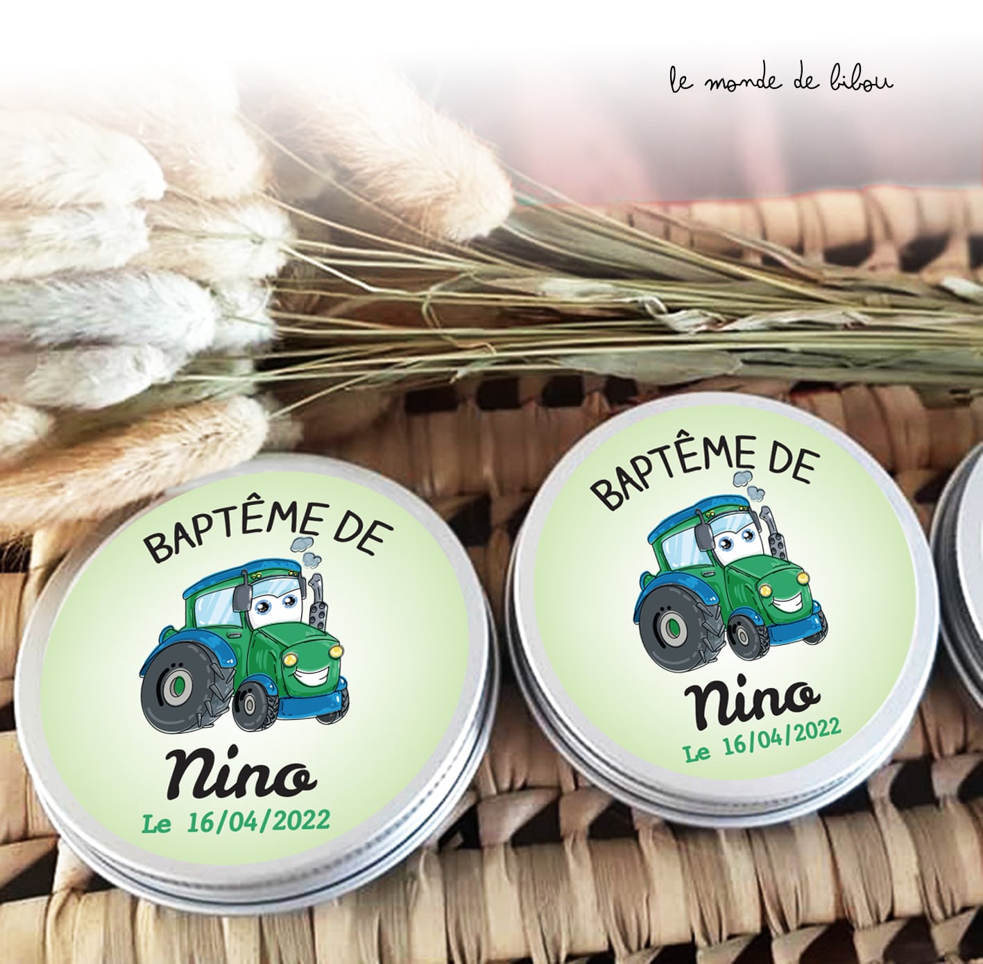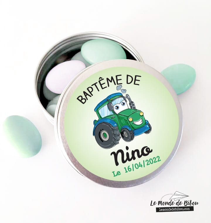 Cette ravissante petite Boîte dragées Bébé tracteur est personnalisable avec le prénom de l’enfant et la date de l’évènement. C’est le cadeau personnalisé idéal à offrir à vos invités lors de votre évènement, que ce soit un cadeau invités Baptême, Communion ou lors d’un anniversaire.