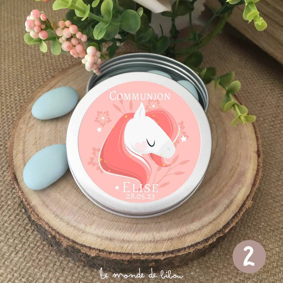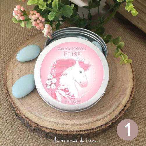 Cette ravissante petite Boîte dragées Cheval personnalisée est personnalisable avec le prénom de l’enfant et la date de l’évènement. C’est le cadeau personnalisé idéal à offrir à vos invités lors de votre évènement, que ce soit un cadeau invités Baptême, Communion ou lors d’un anniversaire.