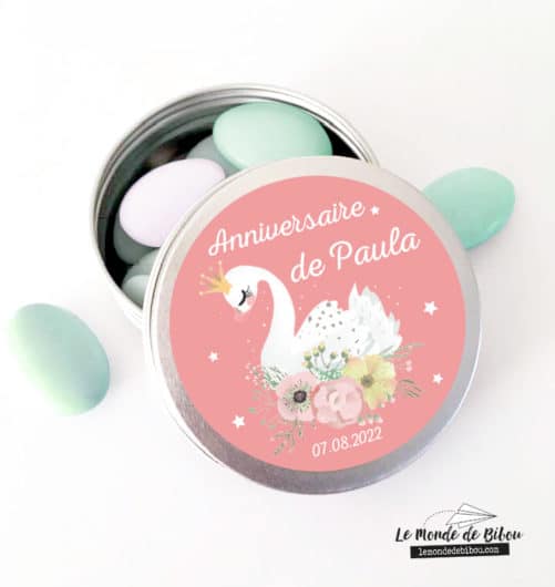 Cette ravissante petite Boîte dragées Cygne est personnalisable avec le prénom de l’enfant et la date de l’évènement. Le cadeau idéal à offrir à vos invités lors de votre évènement, que ce soit un Baptême, une Communion ou un anniversaire.