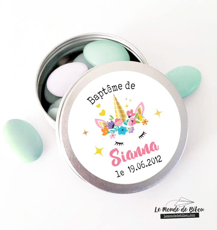 Cette ravissante petite Boîte dragées licorne est personnalisable avec le prénom de l’enfant et la date de l’évènement. C’est le cadeau personnalisé idéal à offrir à vos invités lors de votre évènement, que ce soit un cadeau invités Baptême, Communion ou lors d’un anniversaire.