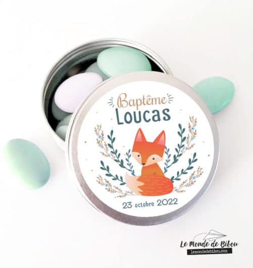 Cette ravissante petite boîte dragées Renard est personnalisable avec le prénom de l’enfant et la date de l’événement. Le cadeau idéal à offrir à vos invités lors de votre événement, que ce soit un Baptême, une communion ou un anniversaire.