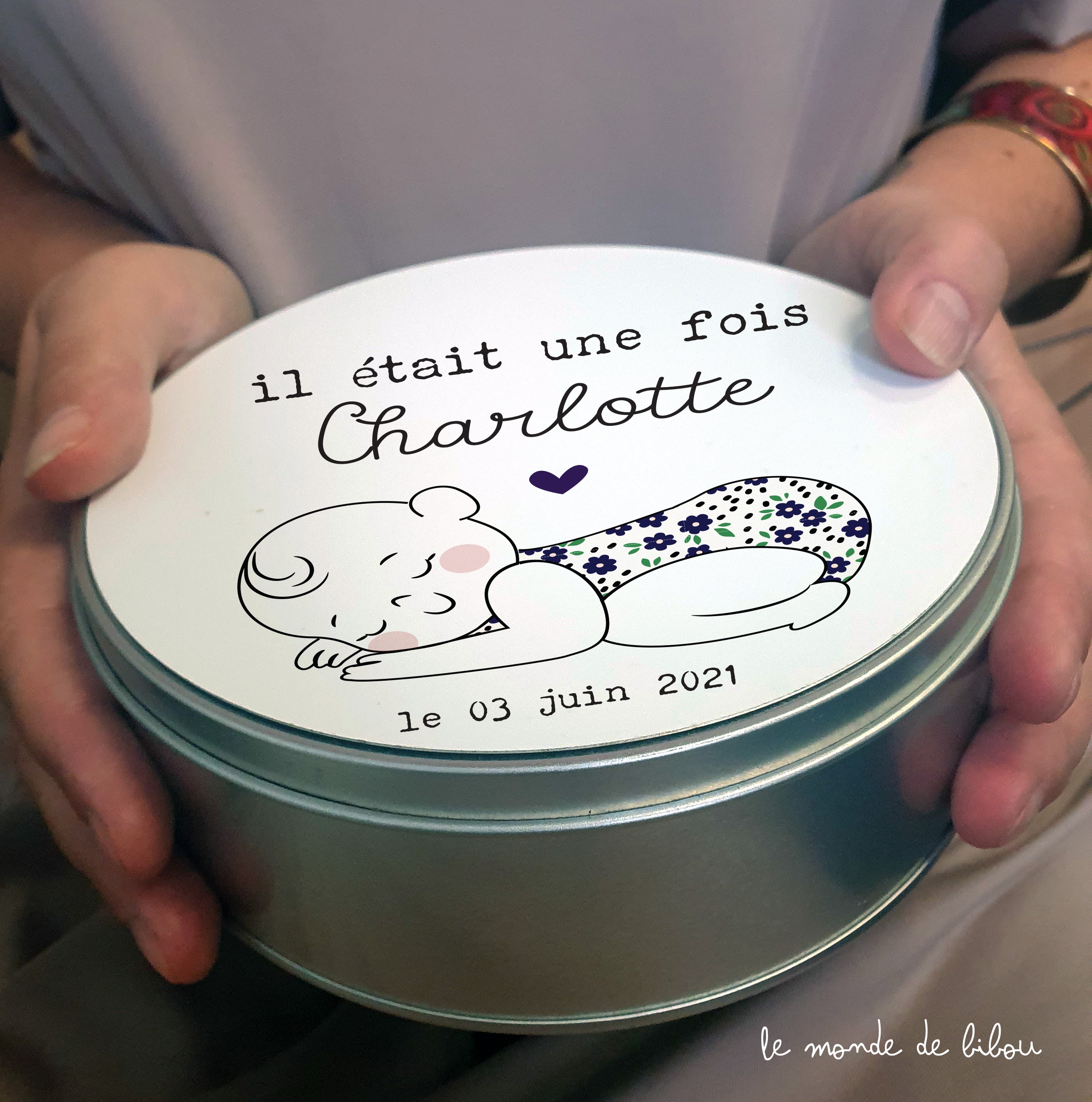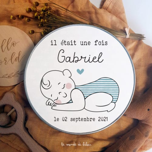 - Texte : « Il était une fois – PRÉNOM de l’enfant + date de naissance «