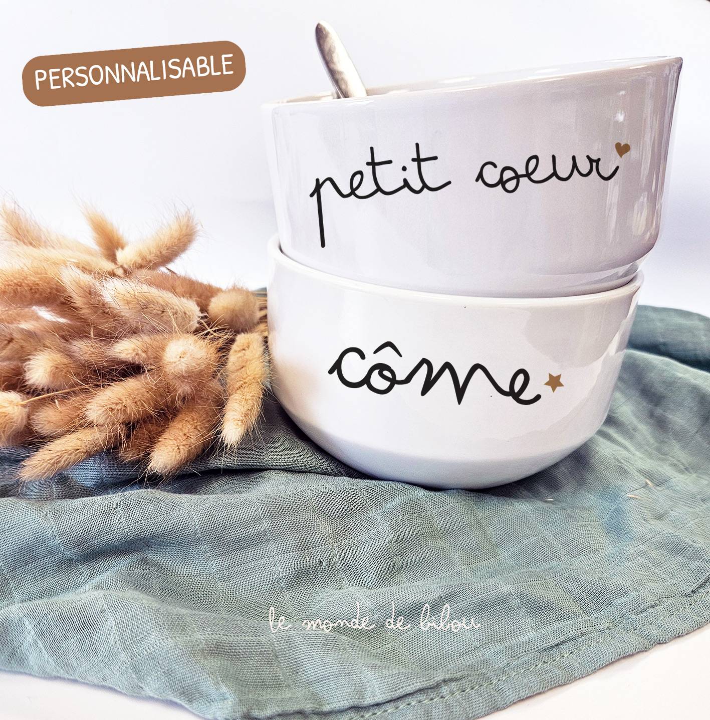 Découvrez notre collection de bols prénom ou surnom, c’est un cadeau unique à offrir à tout votre entourage. Nos bols sont de très bonne qualité, idéal pour le petit-déjeuner ou encore pour vos repas soupe.