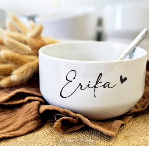 Offrez notre Bol cadeau personnalisé Prénom à qui vous voulez ! Ce joli bol en céramique personnalisé est une chouette idée cadeau pour des anniversaires, les fêtes des mères ou des pères, Noël ou d’autres occasions spéciales.