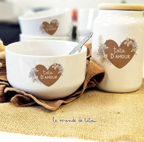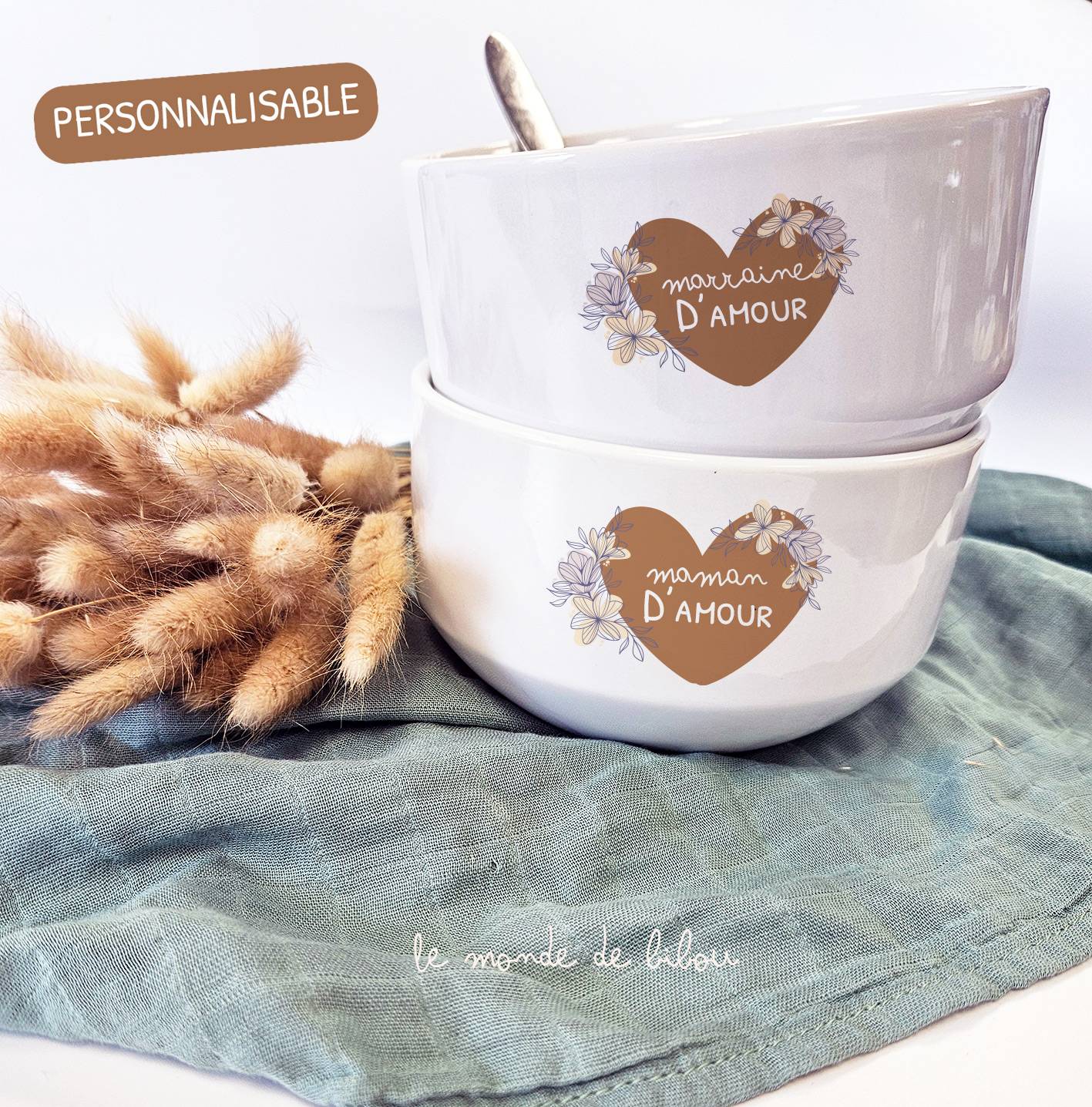 • Personnalisation : Faites de ce bol un objet qui vous correspond. Exemple de personnalisation : Mamie d’amour ! Maitresse Adorée ! tata trop cool ! …