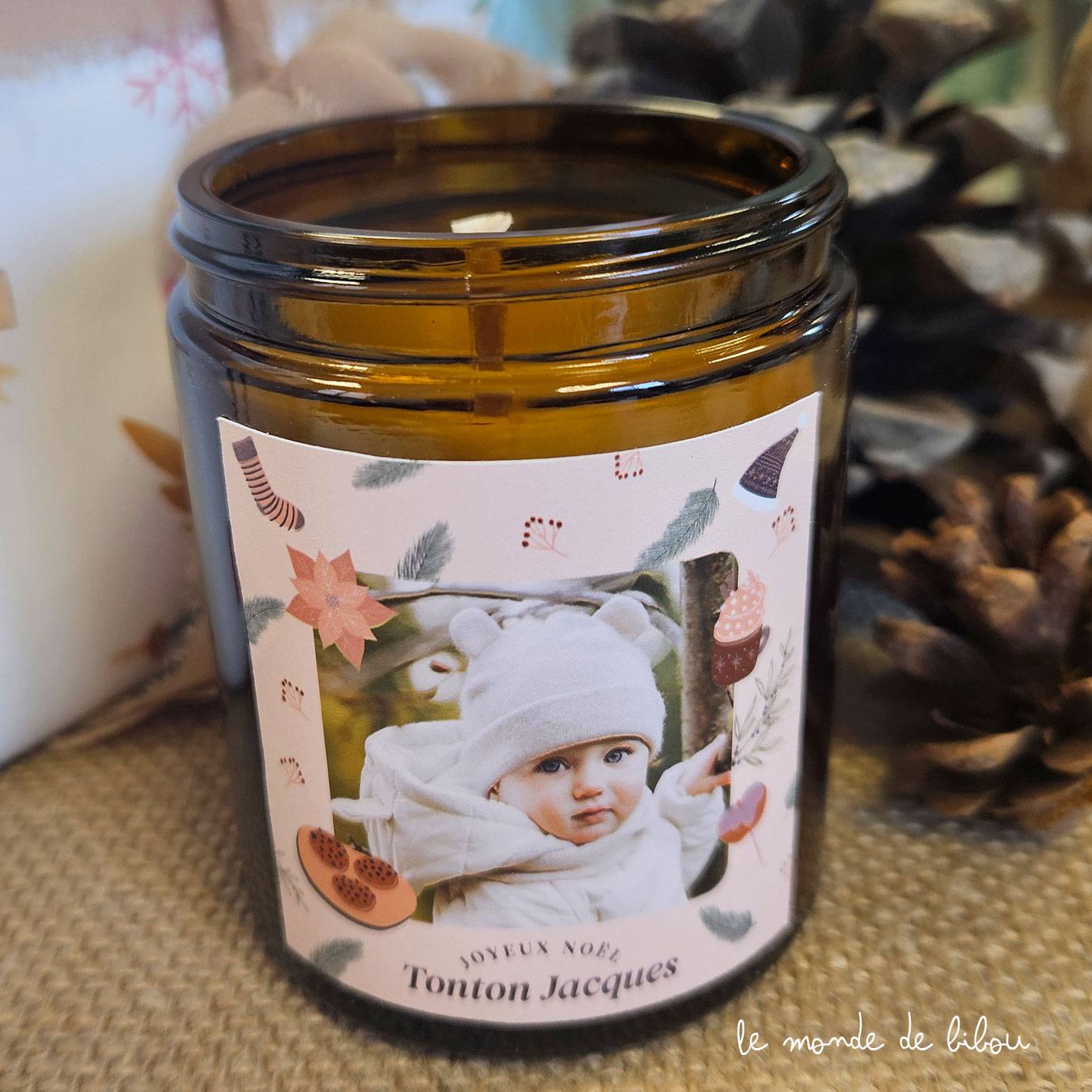 Un cadeau qui respire l’amour, on adore cette Bougie Apothicaire de Noël personnalisable avec photo parfumé aux effluves gourmandes de Noël. Transformez cette bougie en un cadeau unique en ajoutant la photo de votre choix, souvent celle de vos enfants, de votre famille ou d’un moment précieux en famille. Une attention qui saura toucher le cœur de vos proches et qui trouvera sa place dans chaque foyer, sous le sapin ou sur la table des fêtes.