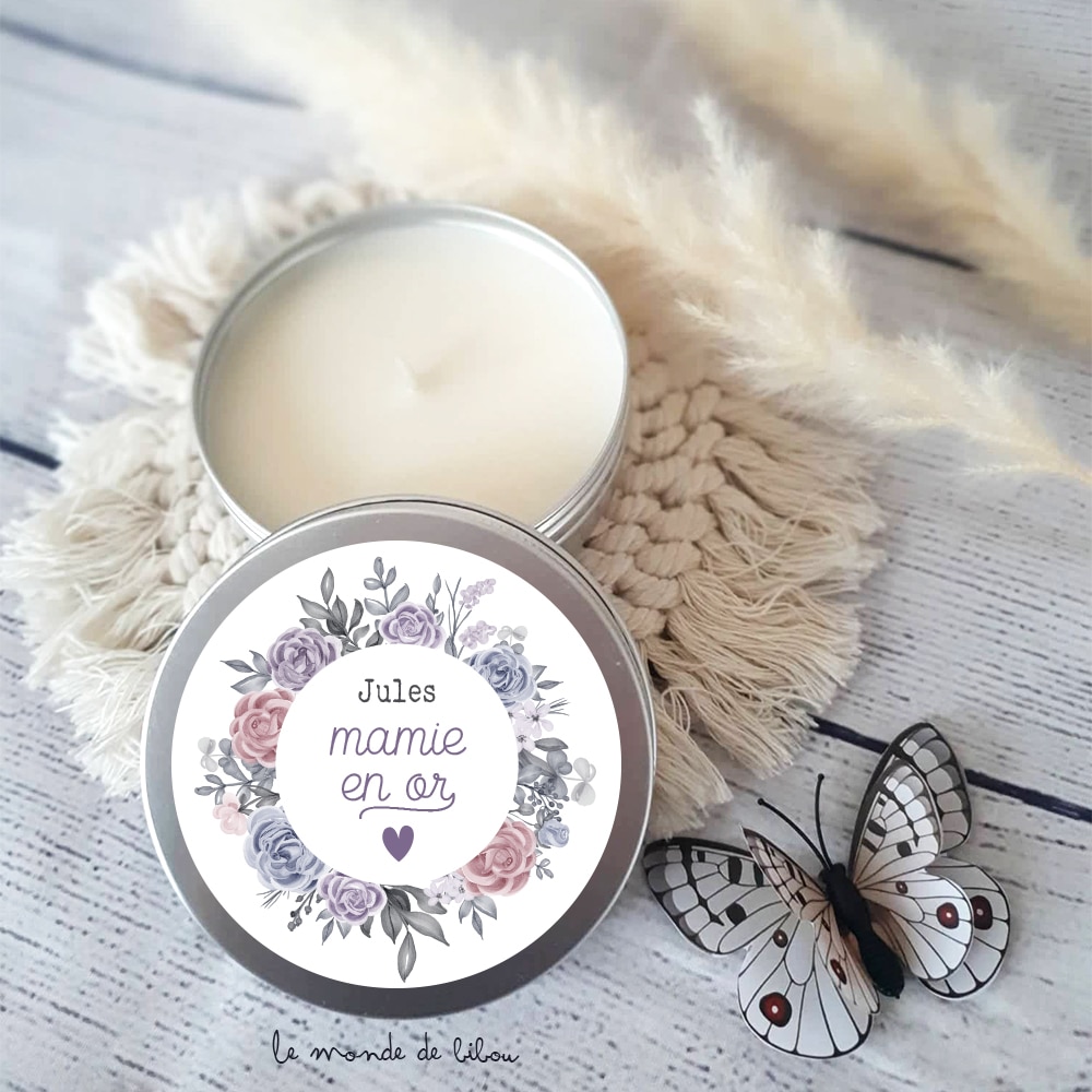 Notre Bougie cadeau pour mamie Couronne de fleurs est une idée originale pour combler une mamie en or ! C’est le cadeau idéal à offrir lors de la fête des grands-mères ou pour un anniversaire. Votre enfant appelle sa mamie, mémère, mamita, grand-ma… aucun problème indiquez le dans le champ personnalisation avant de passer votre commande.