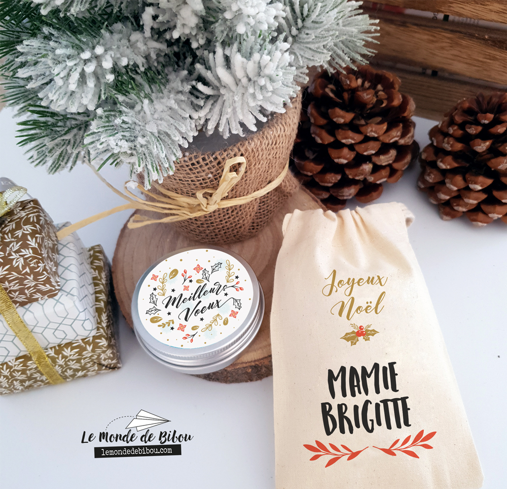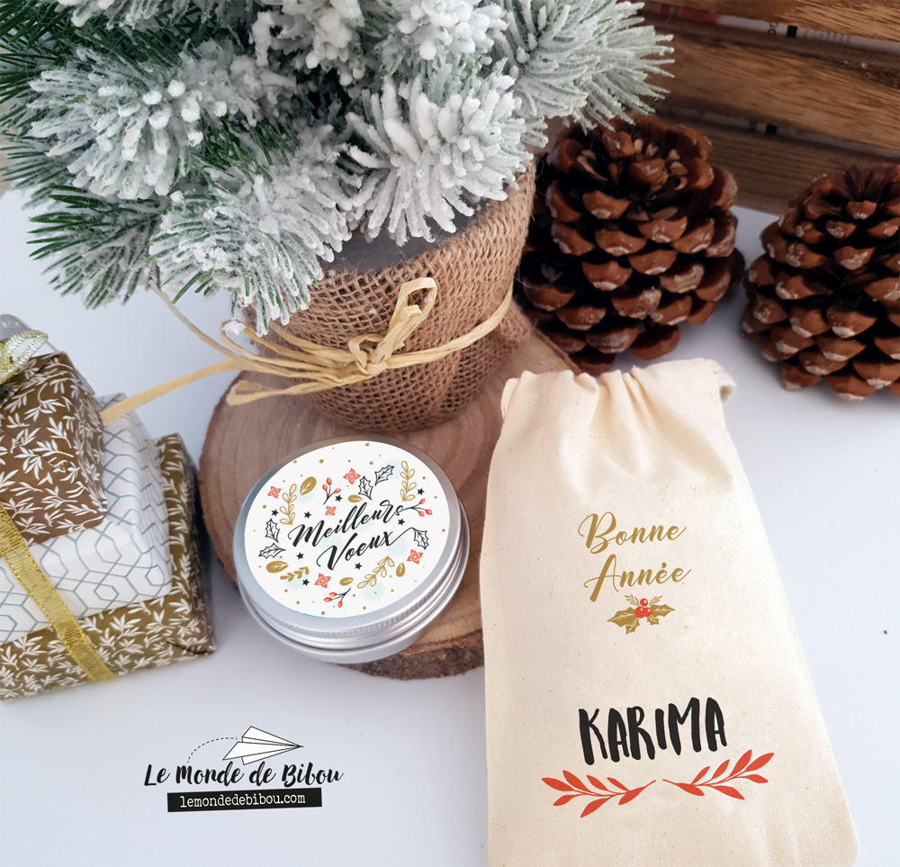 La Bougie de Table Meilleurs Vœux est accompagnée de son sac pochon. Donc pas besoin de l’emballer puisque le sac peut servir de paquet cadeau ! Il est lui aussi personnalisable au prénom de la personne à qui vous l’offrez. C’est également une jolie idée pour personnaliser votre table de Noël. Nos petites bougies serviront de marques places et de cadeaux invités. Une jolie idée de cadeaux à offrir lors des Fêtes de Noël ou pour célébrer la Nouvelle année !