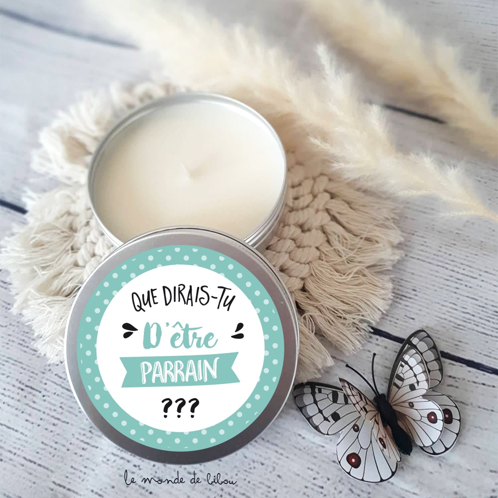 Notre Bougie demande parrain est une idée originale pour faire une jolie demande au futur parrain de votre enfant !