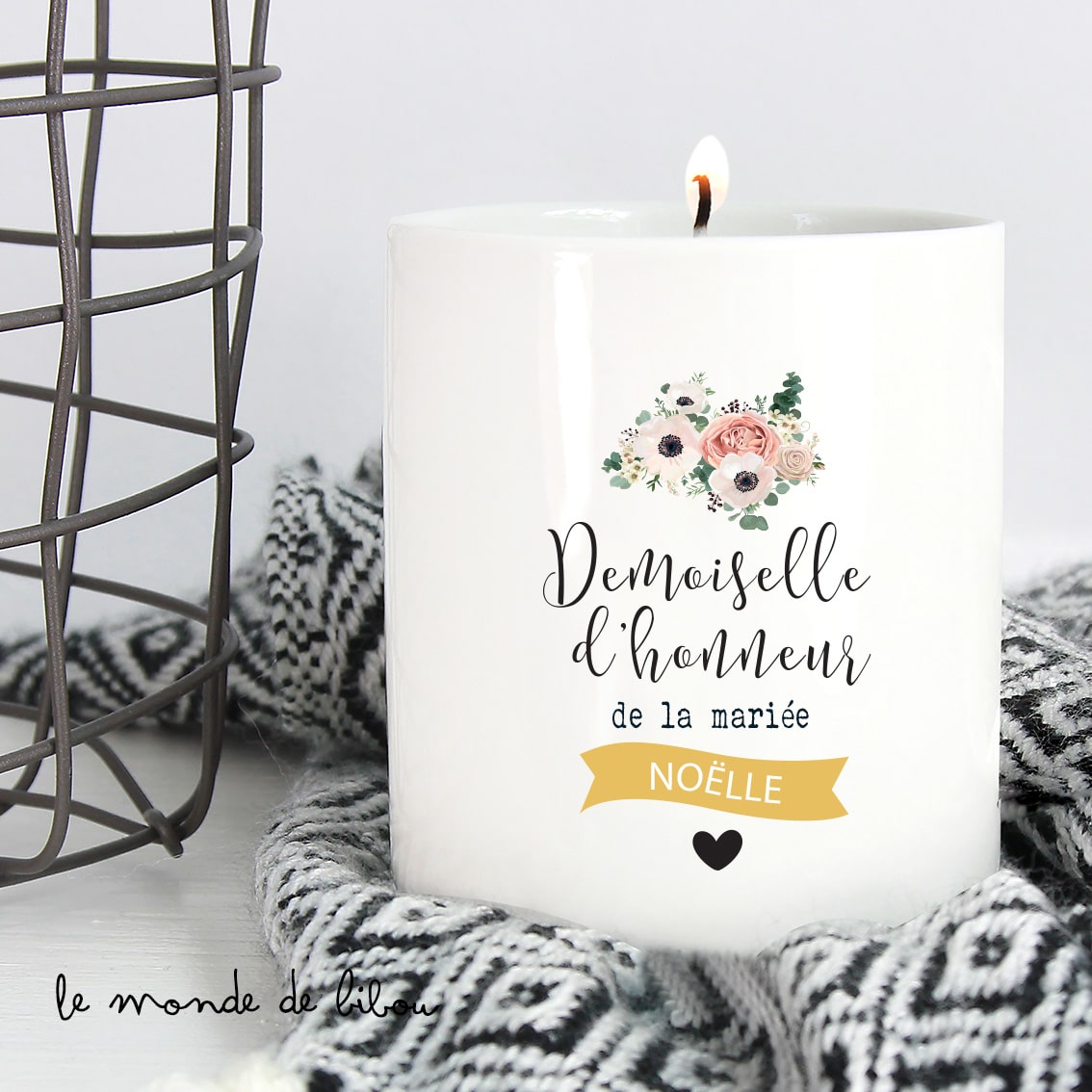 Notre jolie bougie parfumée et personnalisable sera le cadeau idéal pour celle qui sera à vos côtés lors de votre mariage. Cette grosse Bougie Demoiselle d’honneur de la mariée change des cadeaux souvenirs traditionnels. Elle offrira environ 50h de temps de combustion parfumée.