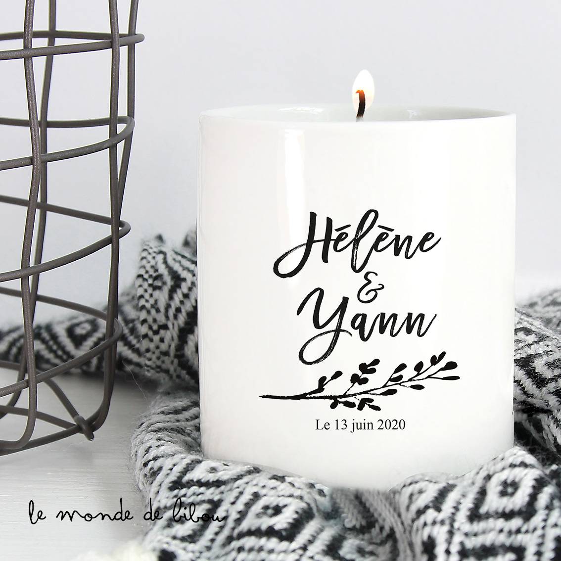 Notre jolie bougie parfumée et personnalisable sera le cadeau invité idéal. Cette grosse Bougie personnalisée Mariage change des traditionnelles dragées. Elle offrira environ 50h de temps de combustion.