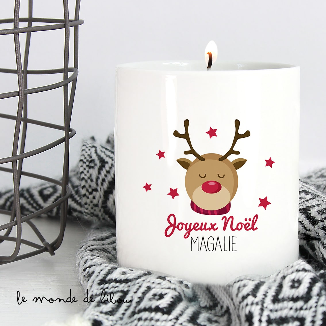 Notre jolie bougie parfumée et personnalisable sera le cadeau invité idéal pour célébrer les fêtes de Noël. Cette Bougie personnalisée Renne de Noël offrira environ 50h de temps de combustion.
