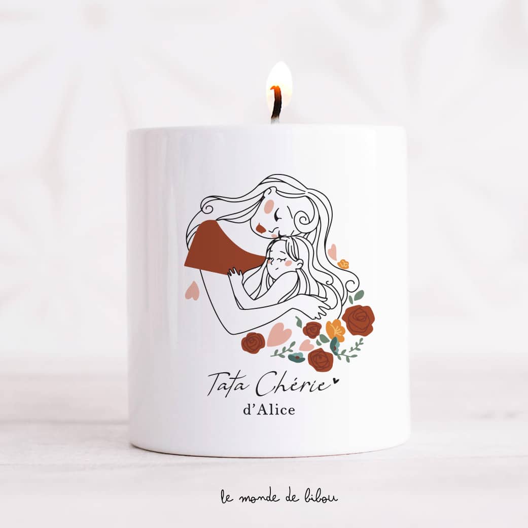 Notre Bougie personnalisée Tata chérie vous plaît ? Retrouvez tous nos cadeaux personnalisés pour les taties sur notre boutique
