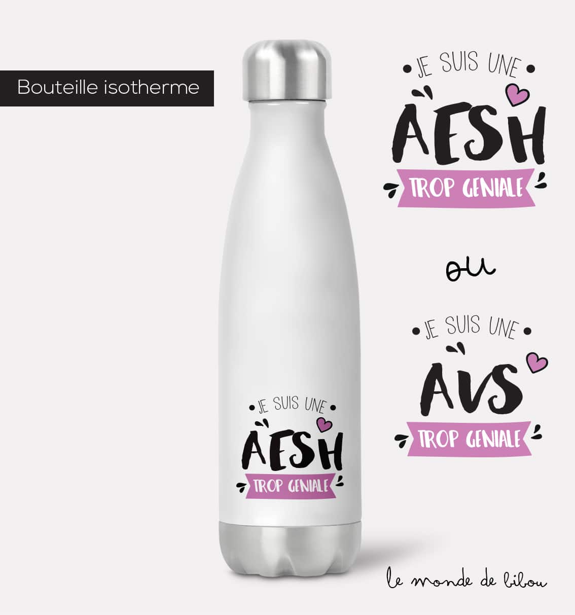 Fini les bouteilles en plastique jetables, vraiment pas écologique, on pense gourde et bouteille isotherme maintenant. Notre Bouteille isotherme AVS génial est une chouette idée de cadeau pour remercier l’Assistant(e) de vie scolaire ou l’AESH (Accompagnant(e) des élèves en situation de handicap) de votre enfant.
