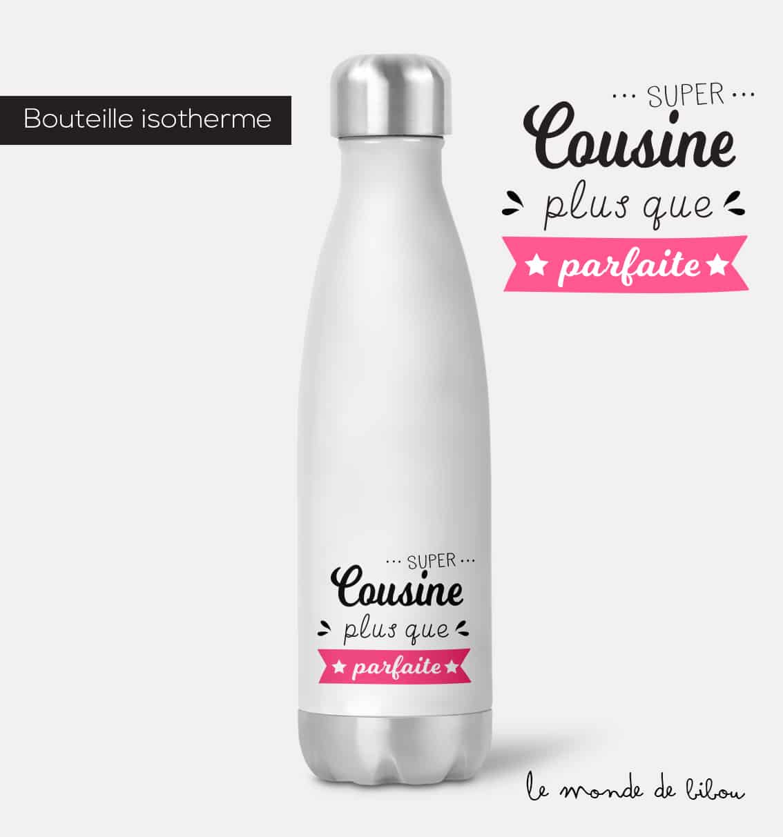 Fini les bouteilles en plastique jetables, vraiment pas écologique, on pense gourde et bouteille isotherme maintenant. Notre Bouteille isotherme Cousine parfaite est une chouette idée de cadeau pour une cousine plus que parfaite.
