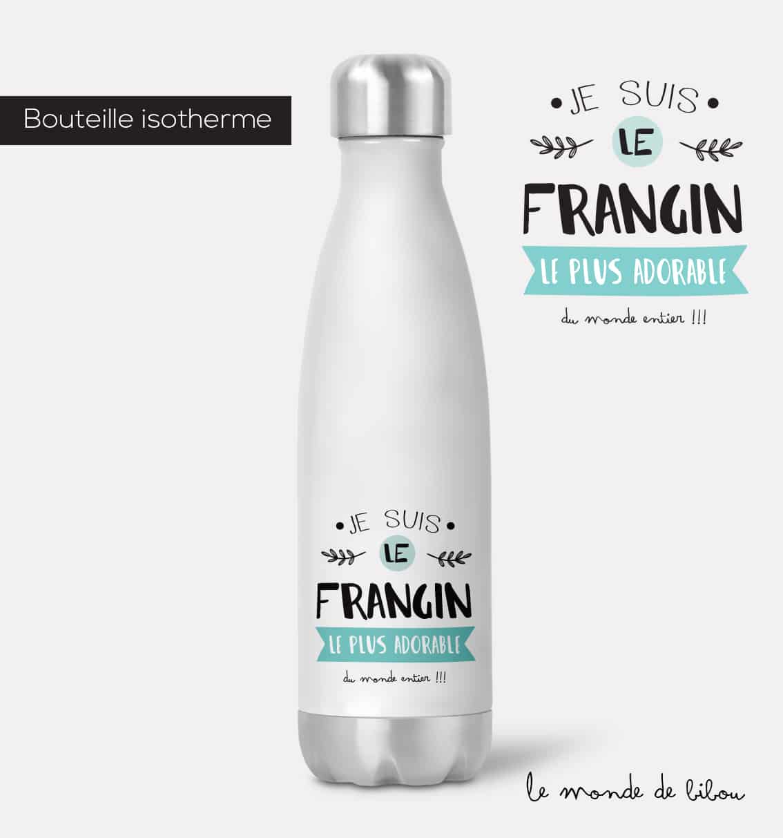 Fini les bouteilles en plastique jetables, vraiment pas écologique, on pense gourde et bouteille isotherme maintenant. Notre Bouteille isotherme Frangin adorable est une chouette idée de cadeau pour votre frère !