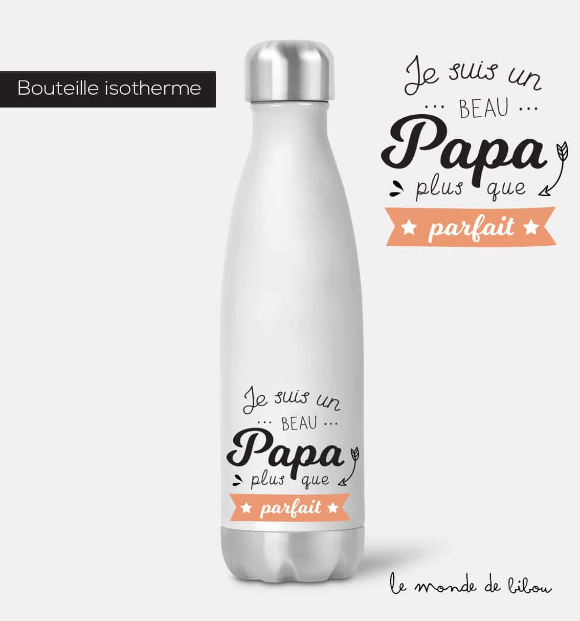 Fini les bouteilles en plastique jetables, vraiment pas écologique, on pense gourde et bouteille isotherme maintenant. Notre Bouteille isotherme Parfait Beau papa est une chouette idée de cadeau pour un beau-père au top !