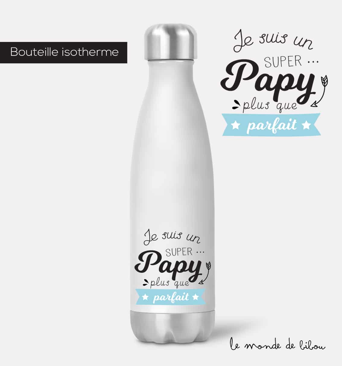 Fini les bouteilles en plastique jetables, vraiment pas écologique, on pense gourde et bouteille isotherme maintenant. Notre Bouteille isotherme Parfait super papy est une chouette idée de cadeau pour un super grand-père !