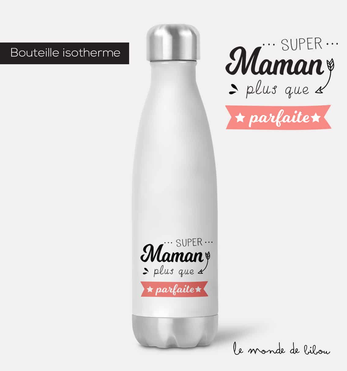 Fini les bouteilles en plastique jetables, vraiment pas écologique, on pense gourde et bouteille isotherme maintenant. Notre Bouteille isotherme Parfaite super maman est une chouette idée de cadeau pour maman chérie !